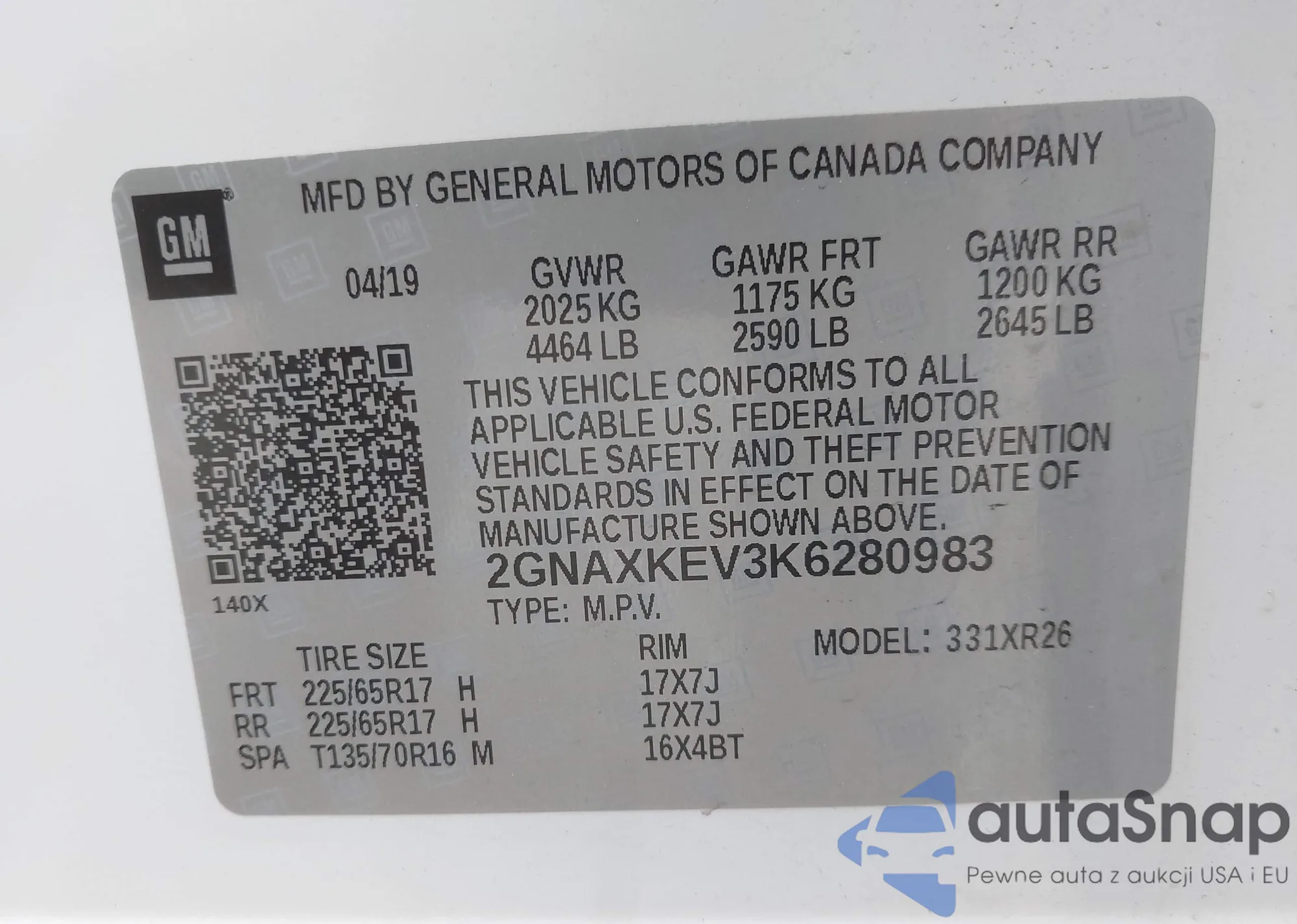 • VIN 3GNAXKEG0PL181252