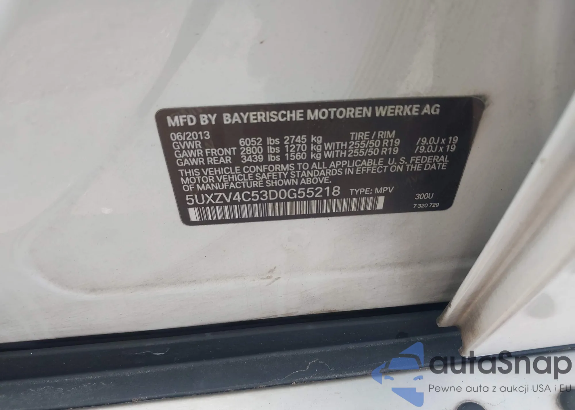 • VIN 5UXZV4C53D0G55218