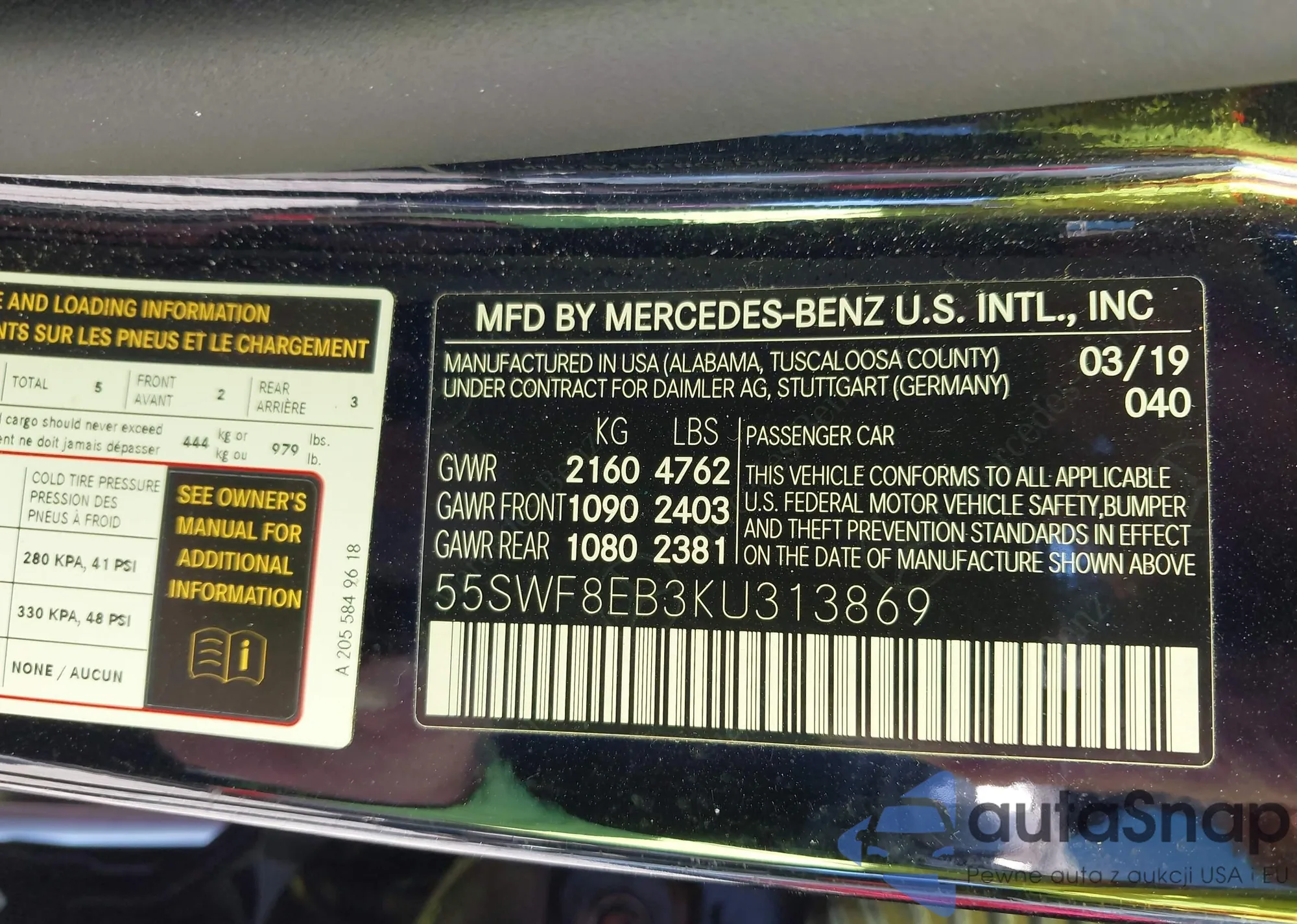 • VIN 55SWF8EB3KU313869