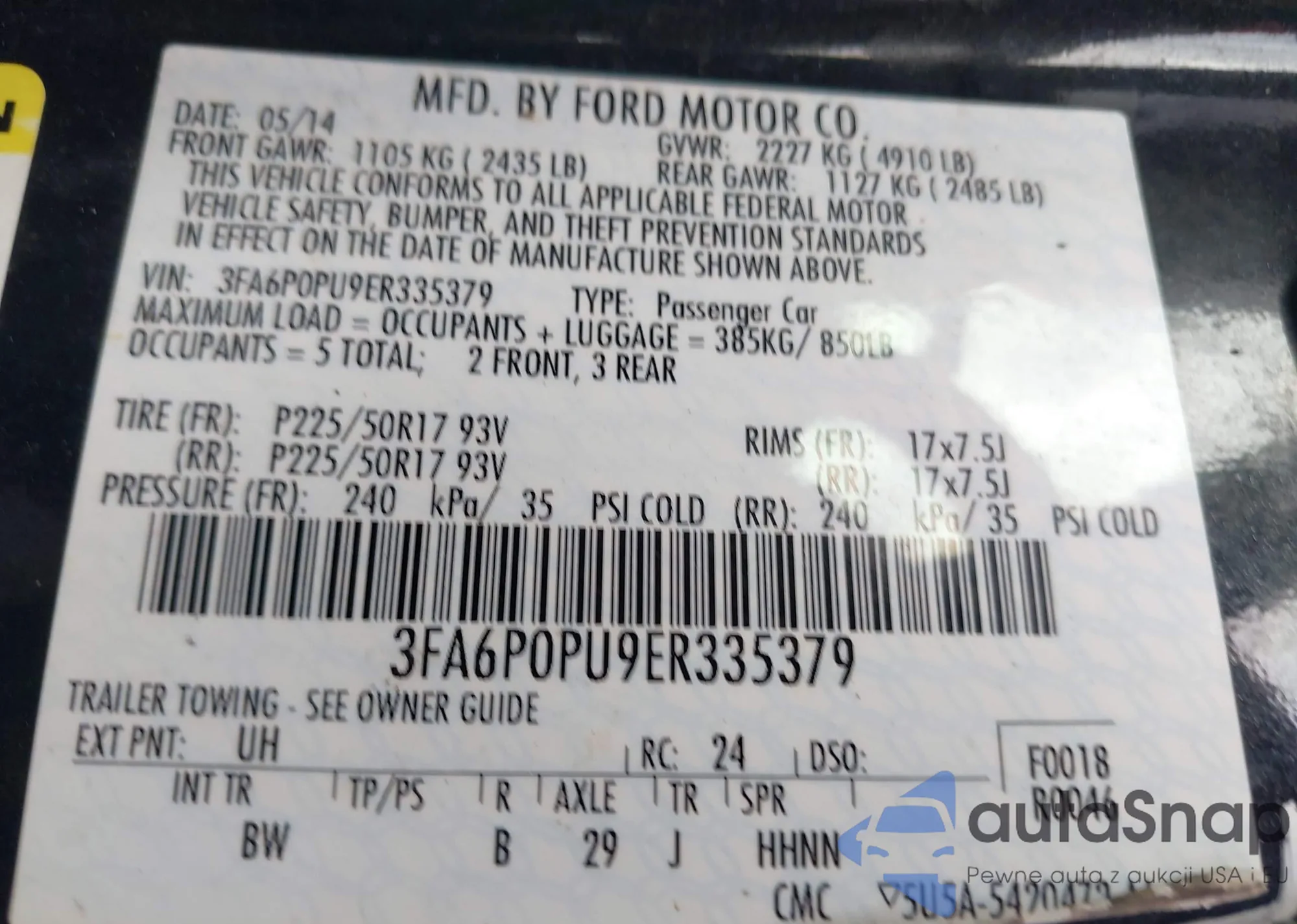 • VIN 3FA6P0PU9ER335379
