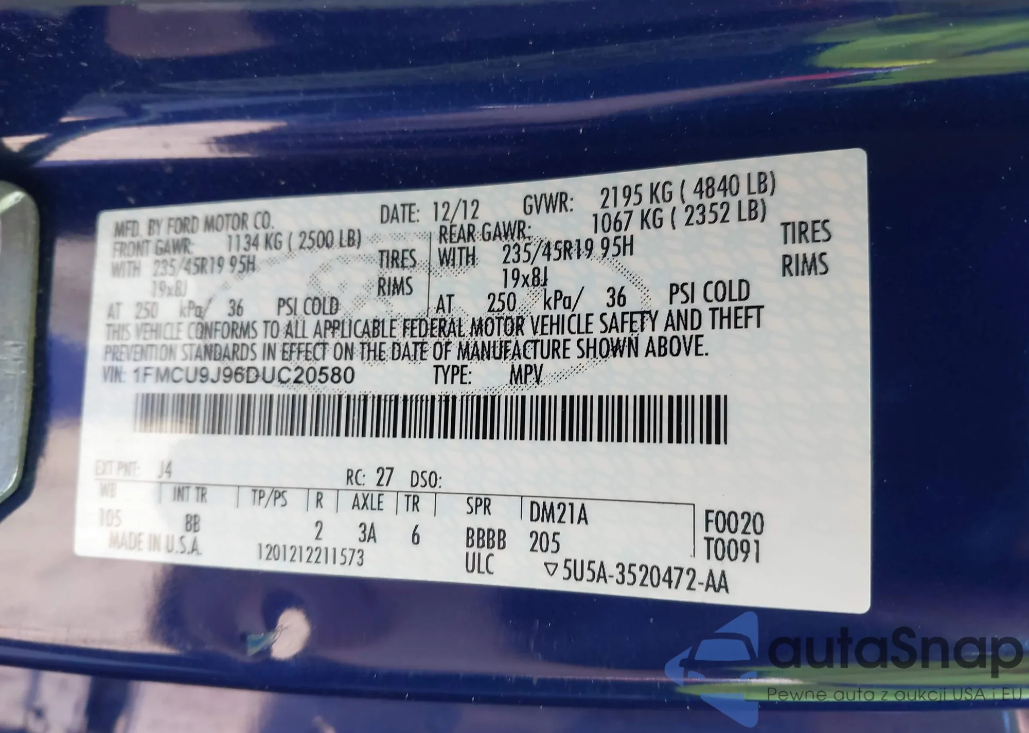 • VIN WAUBGAFL4FA081080