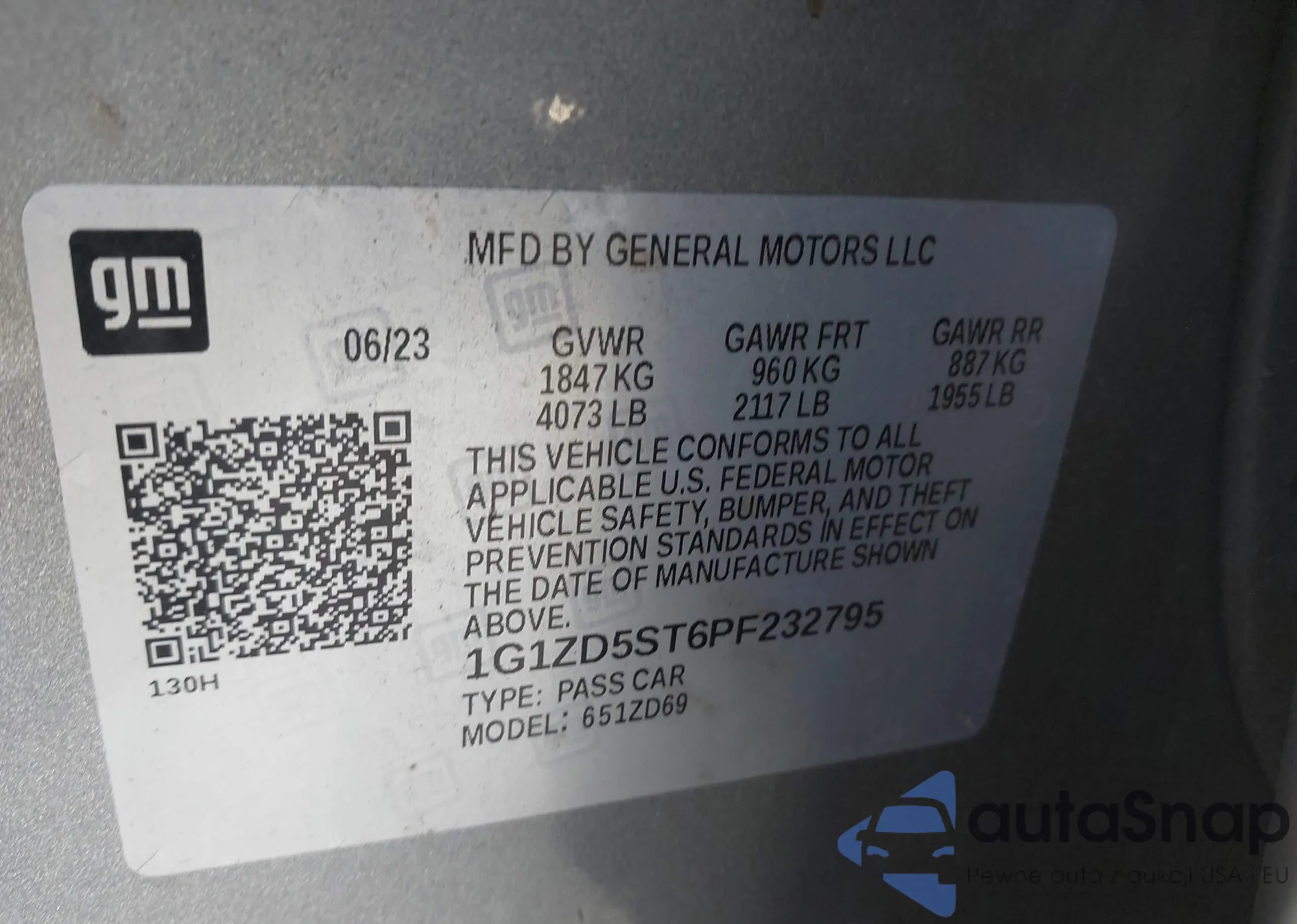 LOT: 43651710 VIN: 1G11C5SL2FF116105