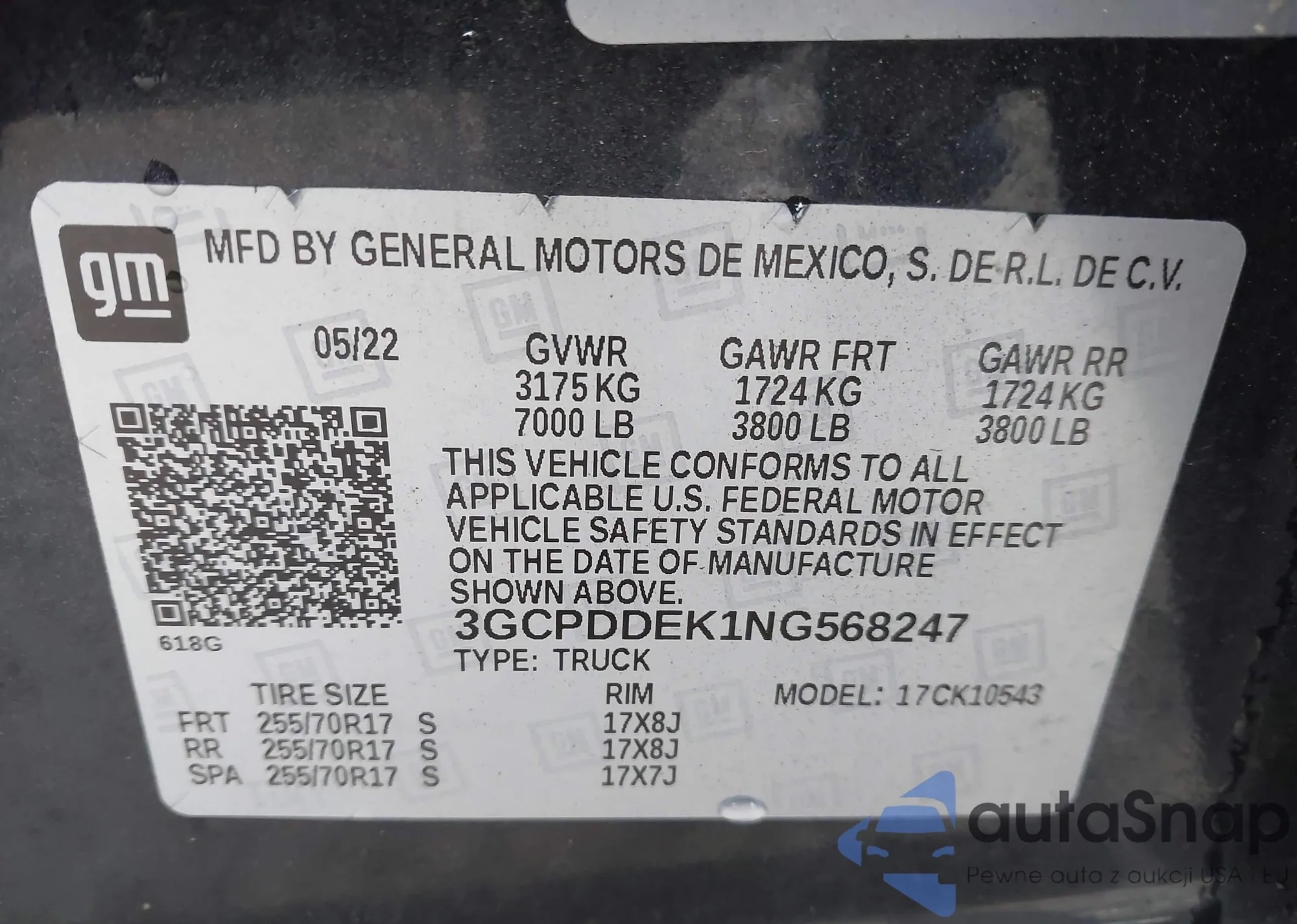 • VIN 3GCPDDEK1NG568247