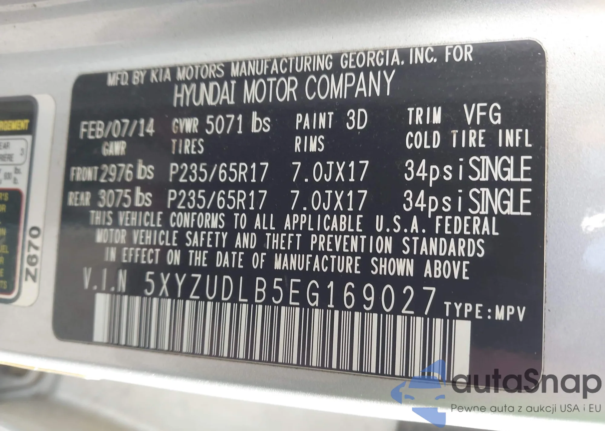 • VIN 5XYZUDLB5EG169027