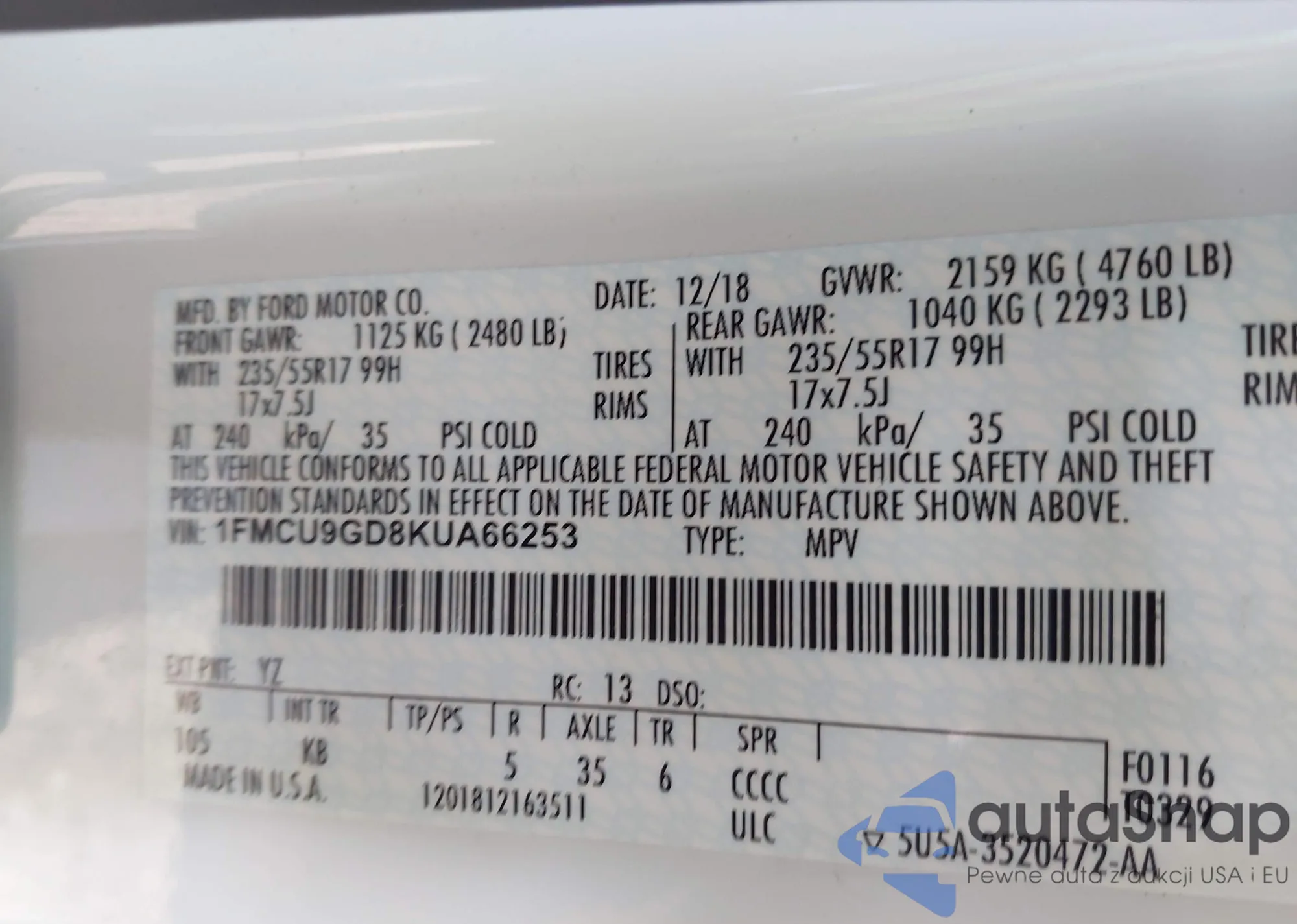 LOT: 43755405 VIN: 1FAHP3F28CL195007