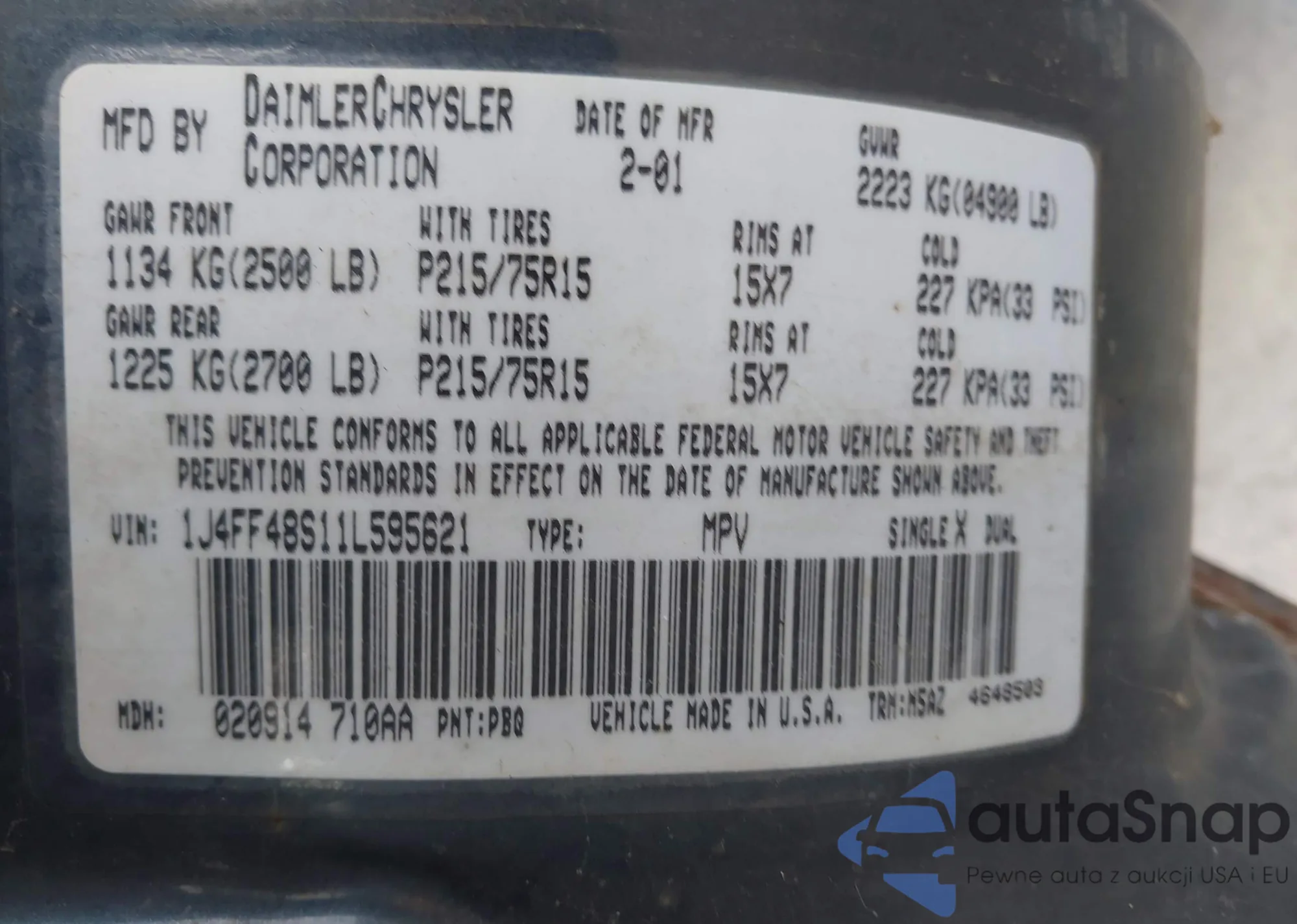 • VIN 1J4FF48S11L595621