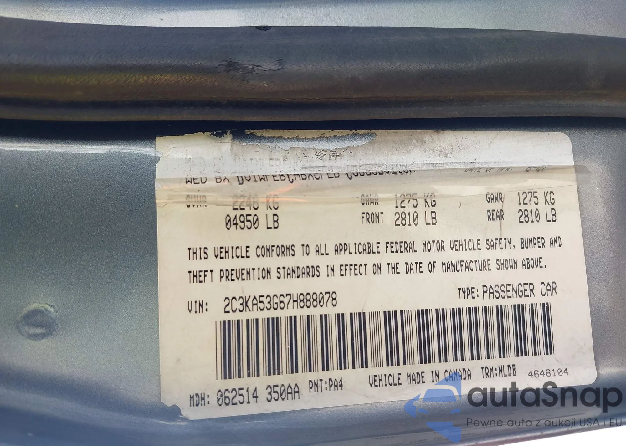 • VIN 2C3KA53G67H888078