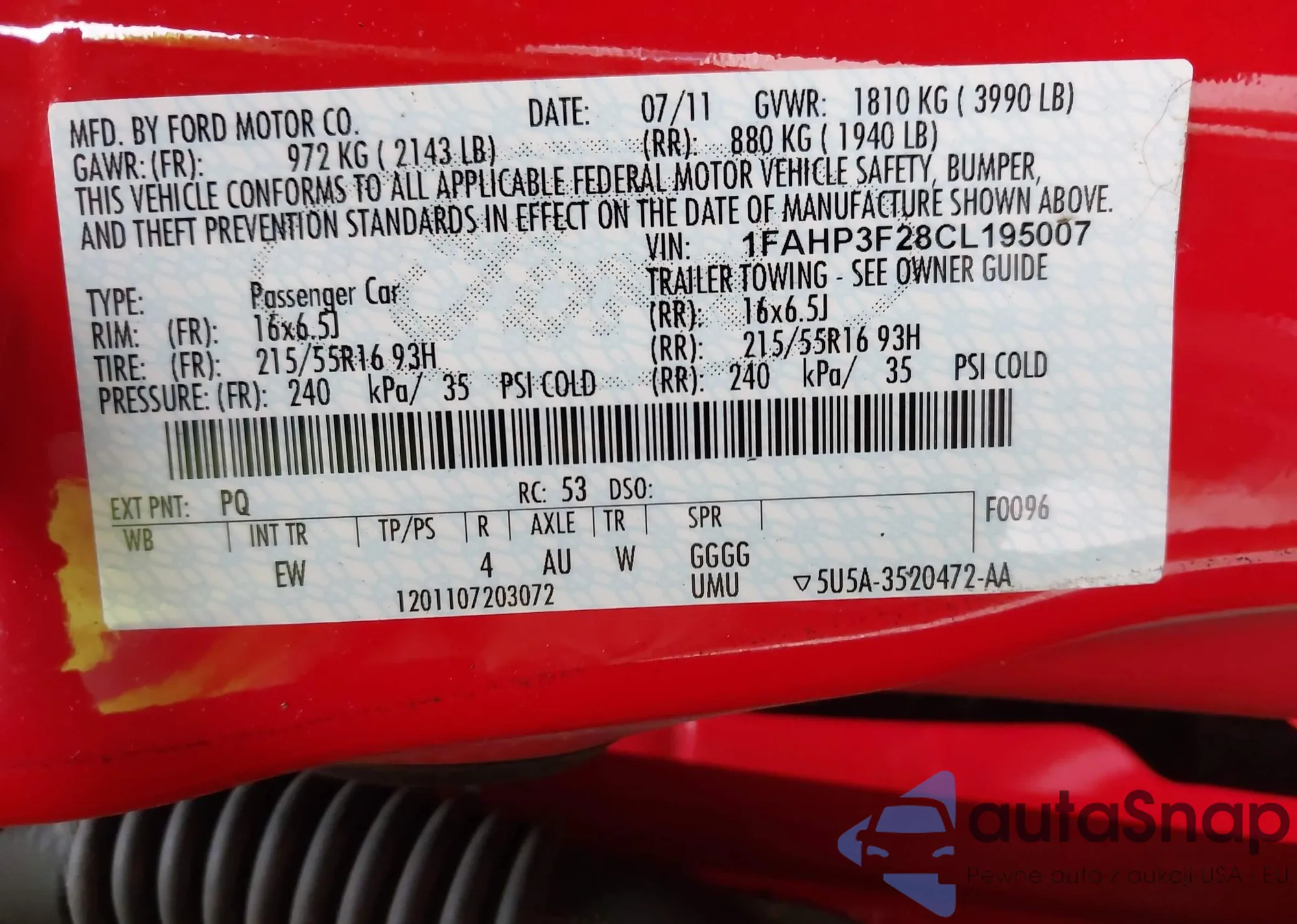 • VIN 1FAHP3F28CL195007