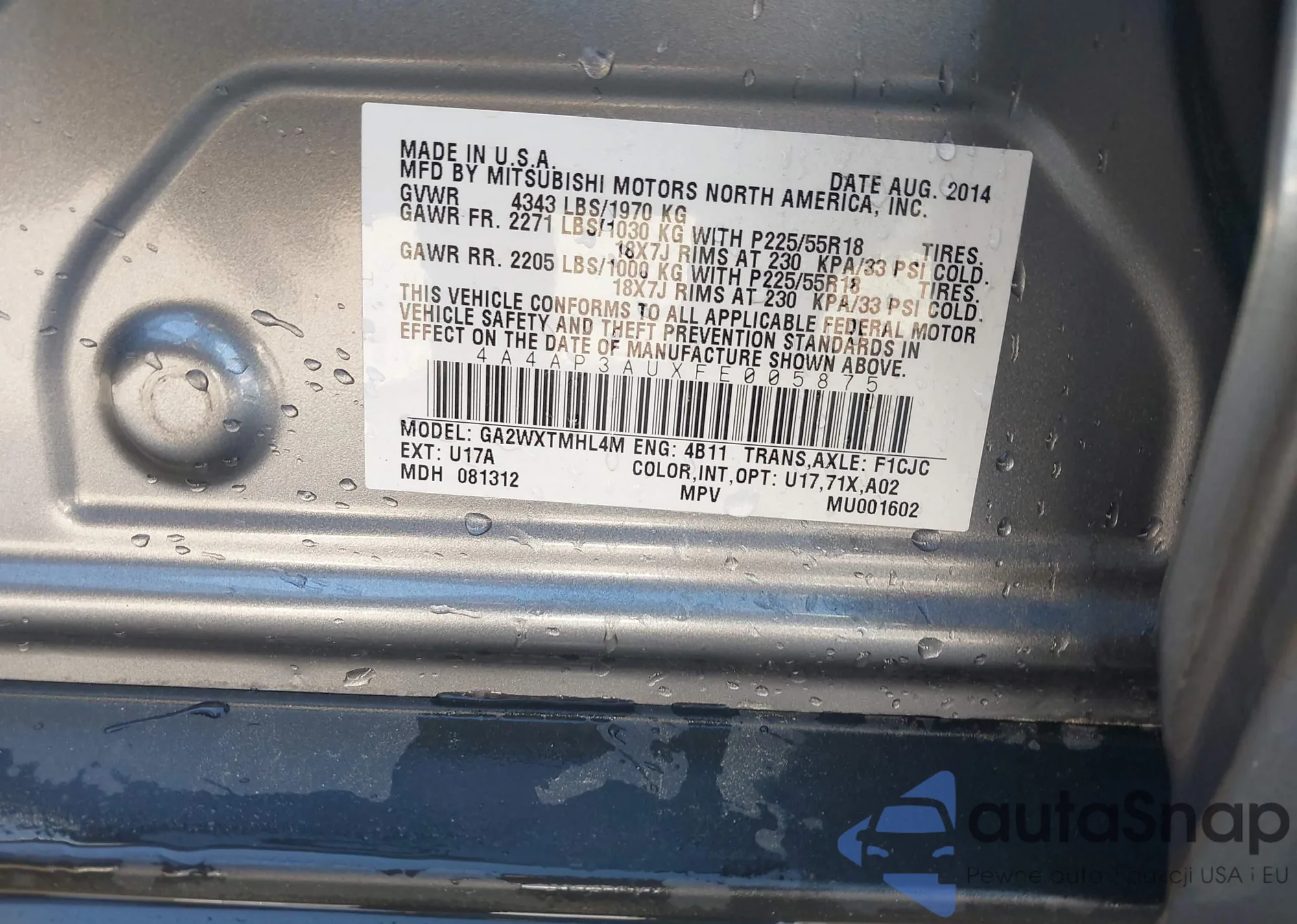 • VIN 4A4AP3AUXFE005875