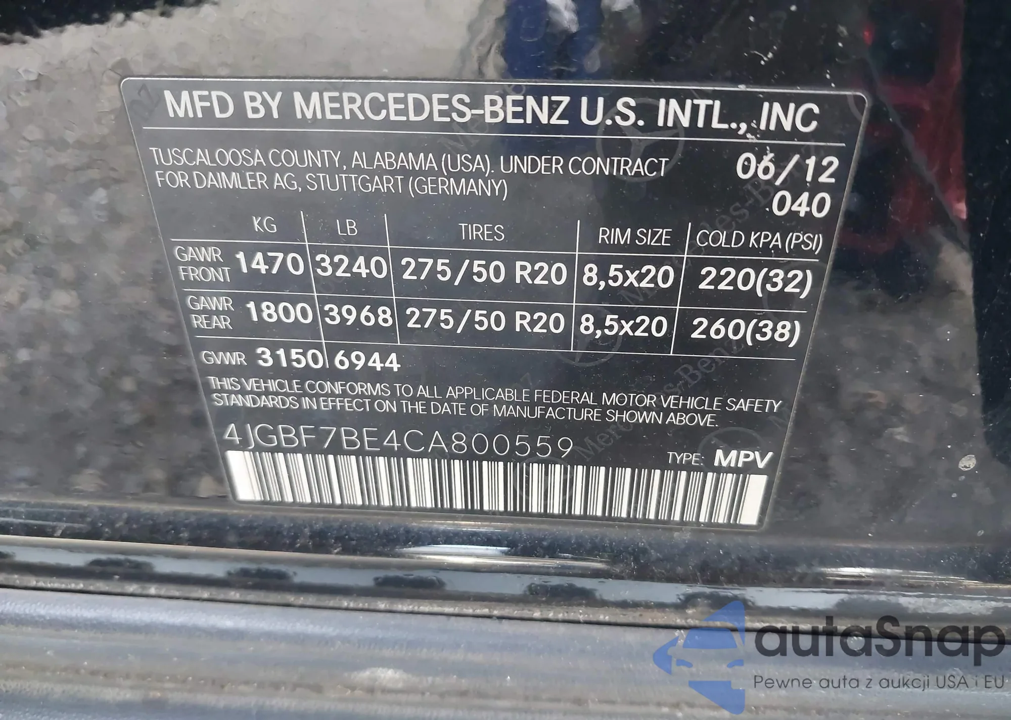 • VIN 4JGBF7BE4CA800559