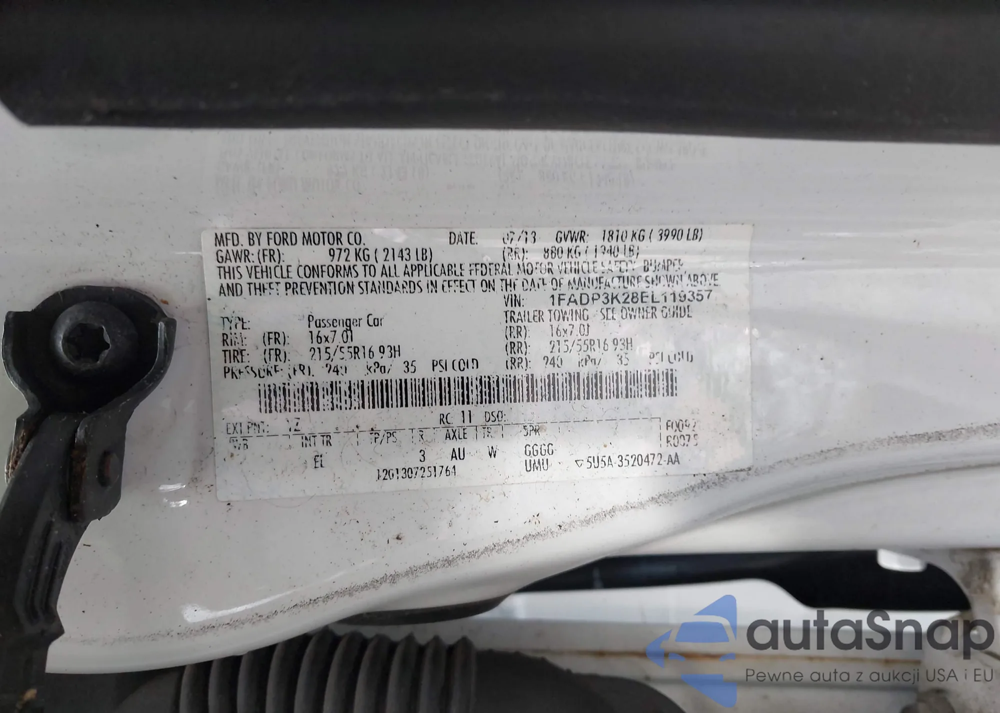 LOT: 43693671 VIN: 1FADP3K28EL119357