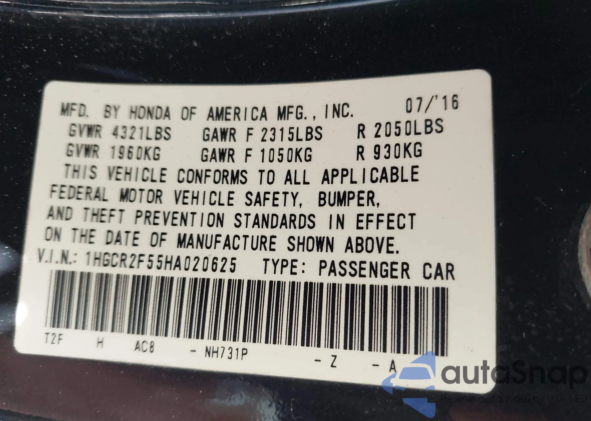 LOT: 43673769 VIN: JHMFA36259S008077