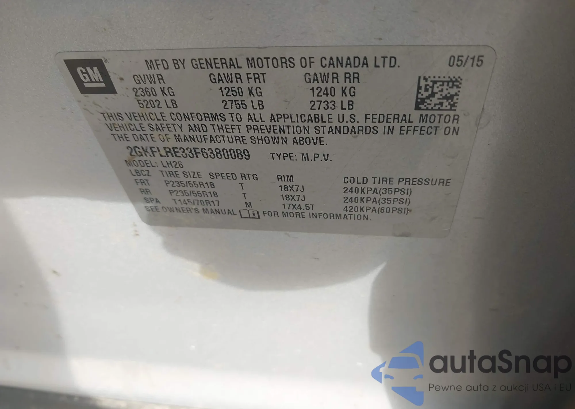 LOT: 43099770 VIN: 5TDKK3DC4FS686574