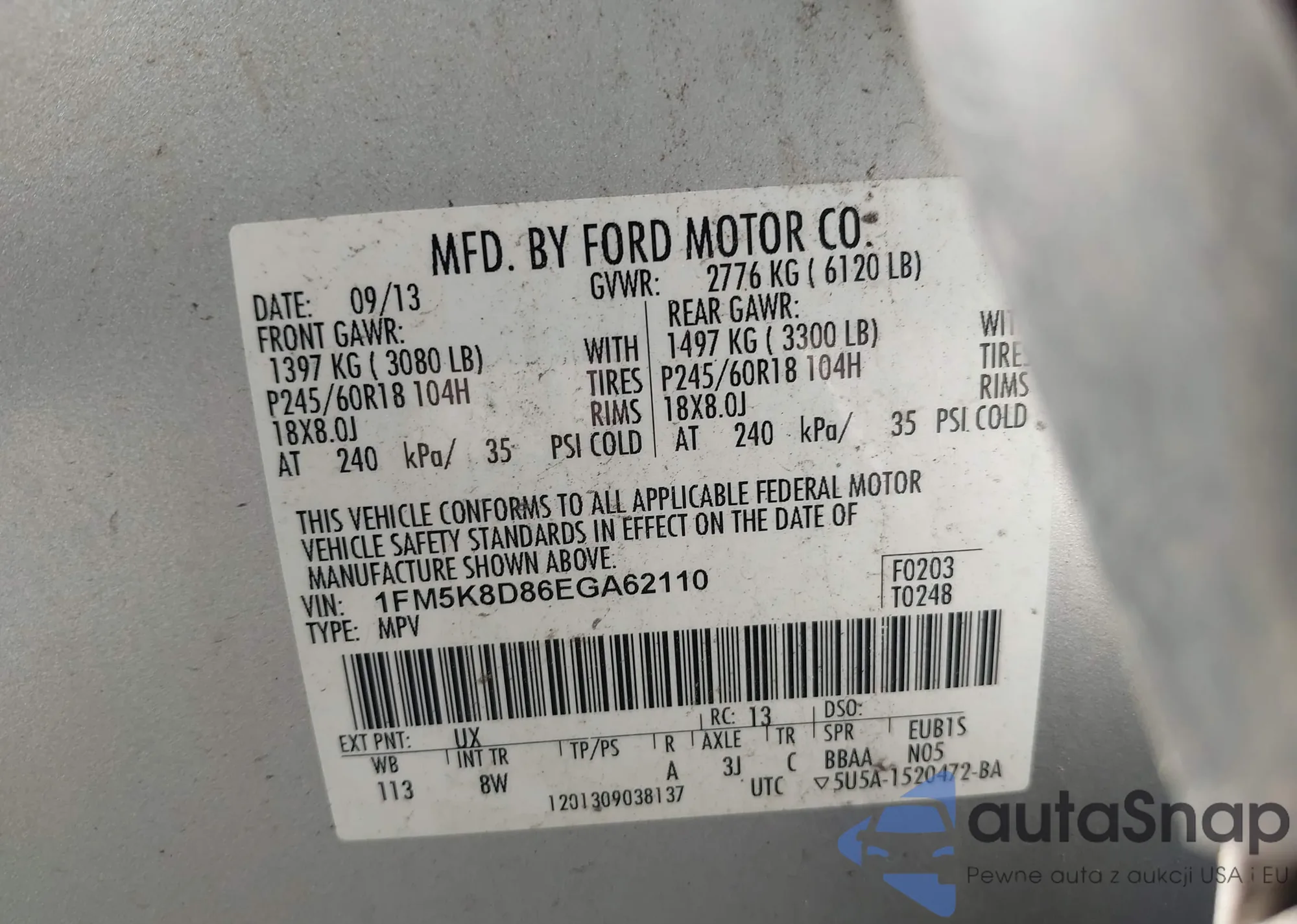 LOT: 42731008 VIN: 1FM5K8D86EGA62110