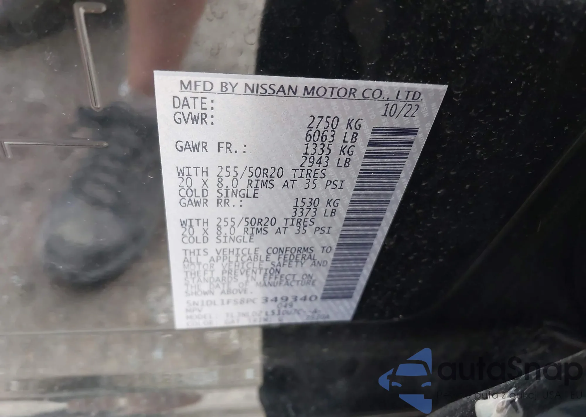 • VIN 5N1DL1FS8PC349340