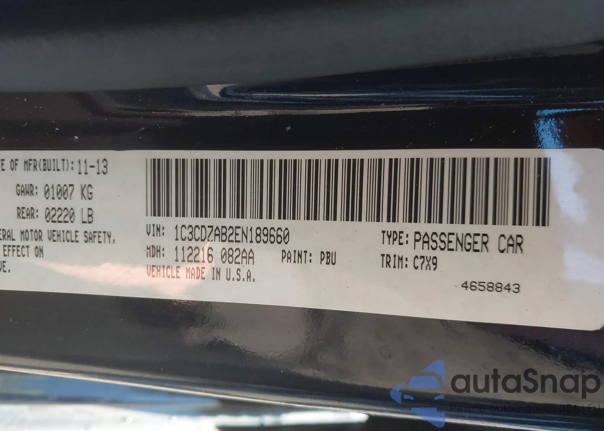 LOT: 43542960 VIN: 1C3CDZAB2EN189660
