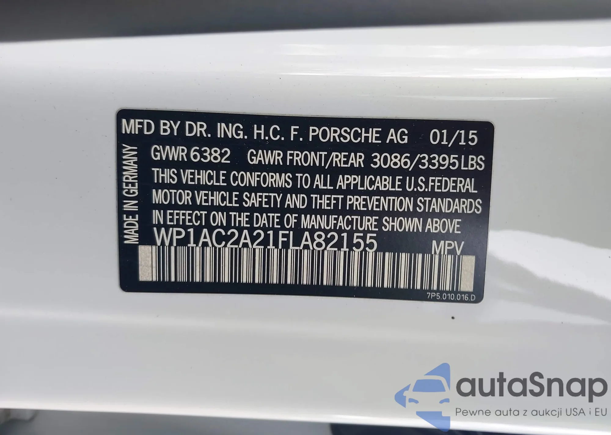 LOT: 43500663 VIN: WP1AC2A21FLA82155
