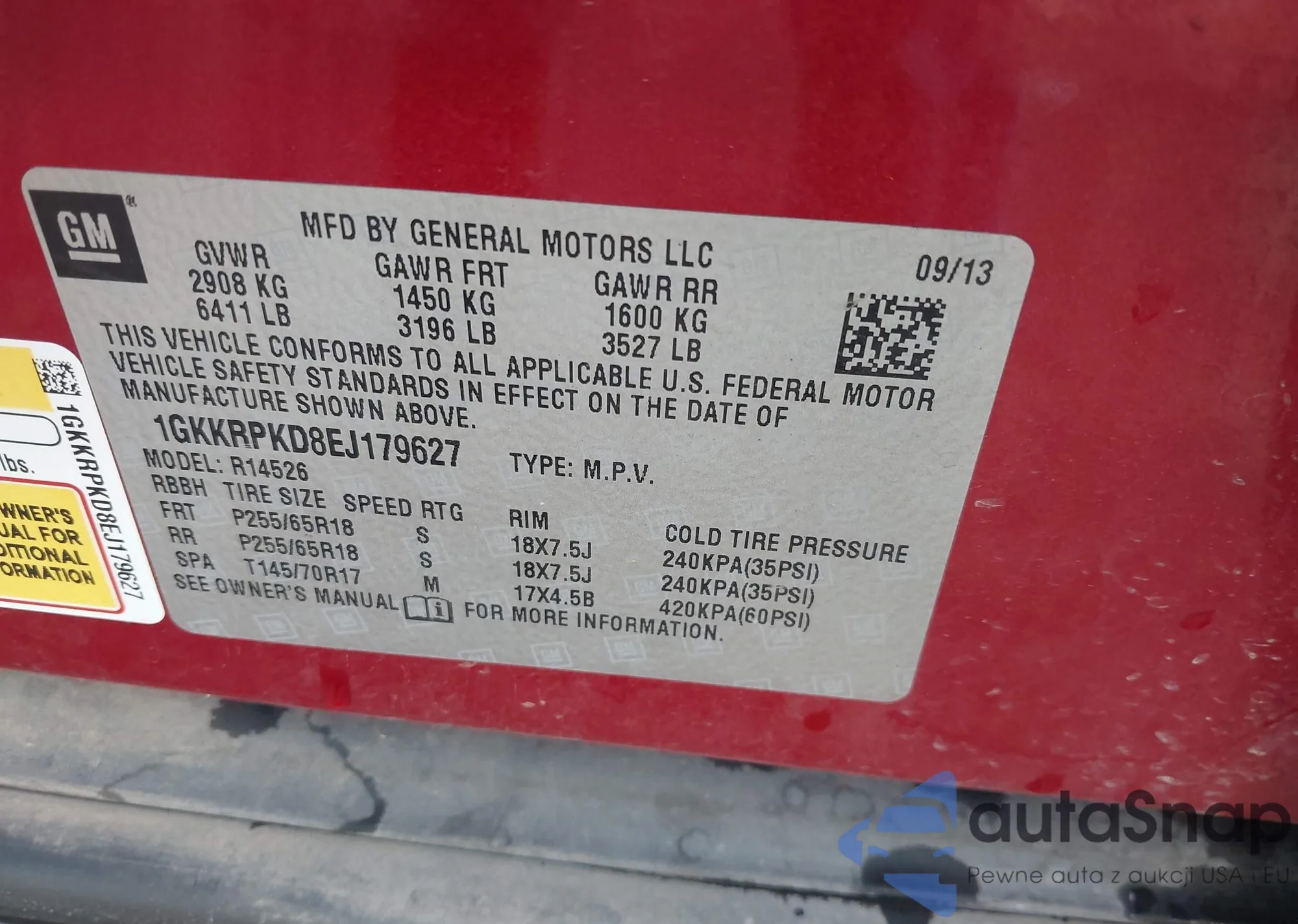 LOT: 43651164 VIN: 1GKKRPKD8EJ179627