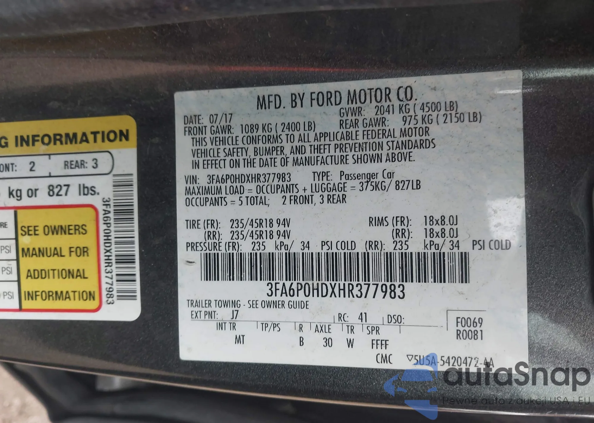 • VIN 3FA6P0HDXHR377983