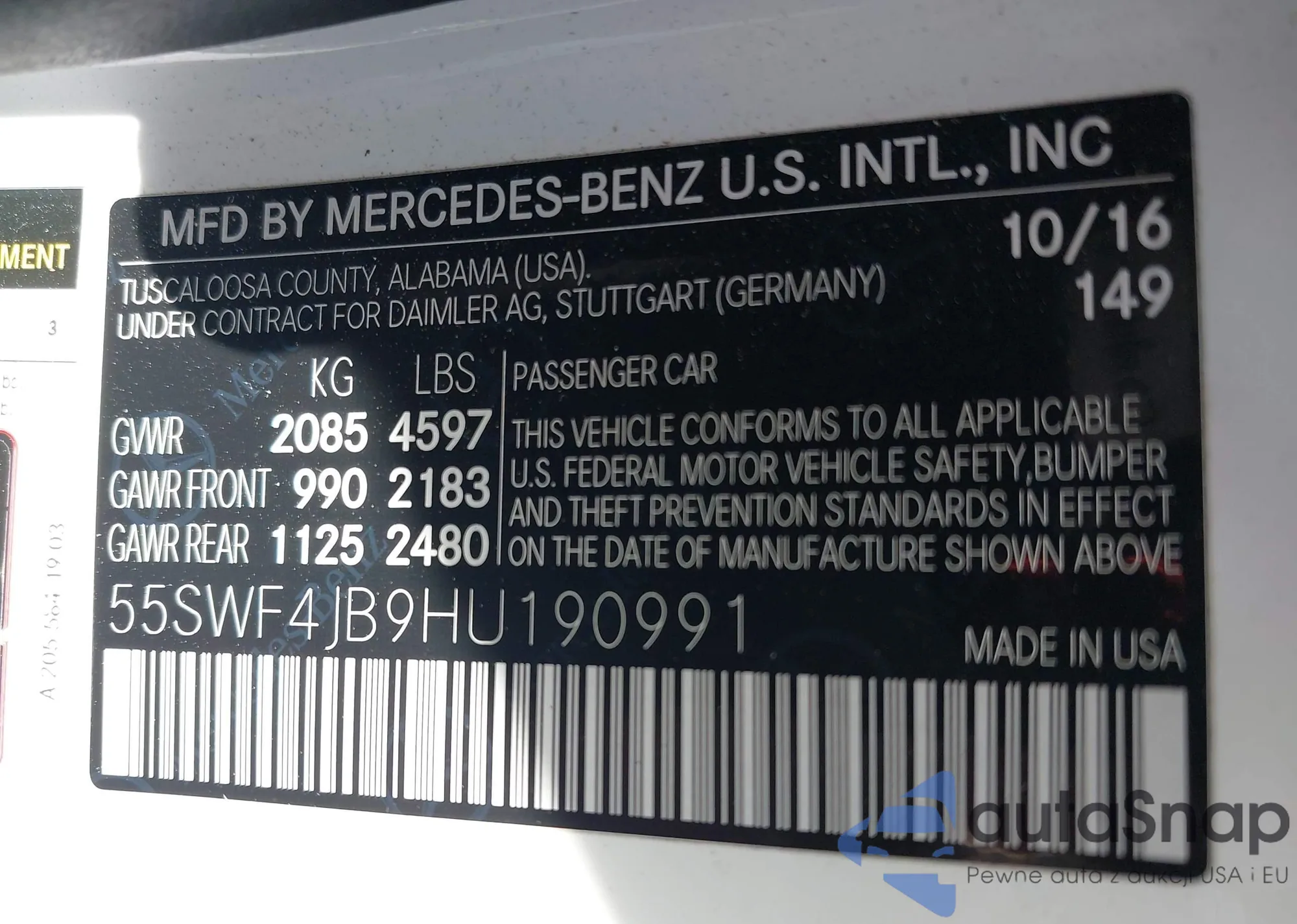 • VIN 55SWF4JB9HU190991