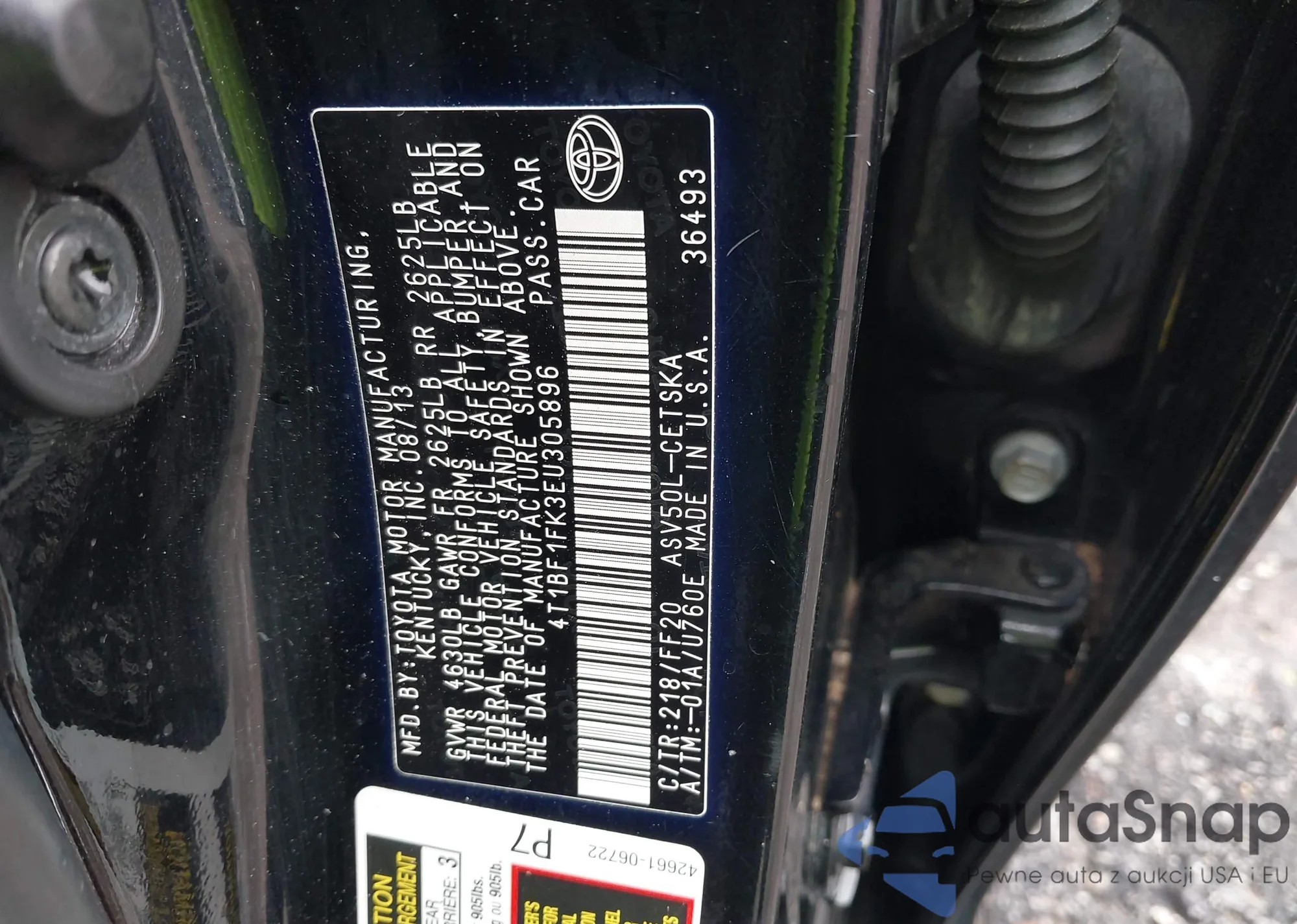 • VIN 4T1BF1FK3EU305896