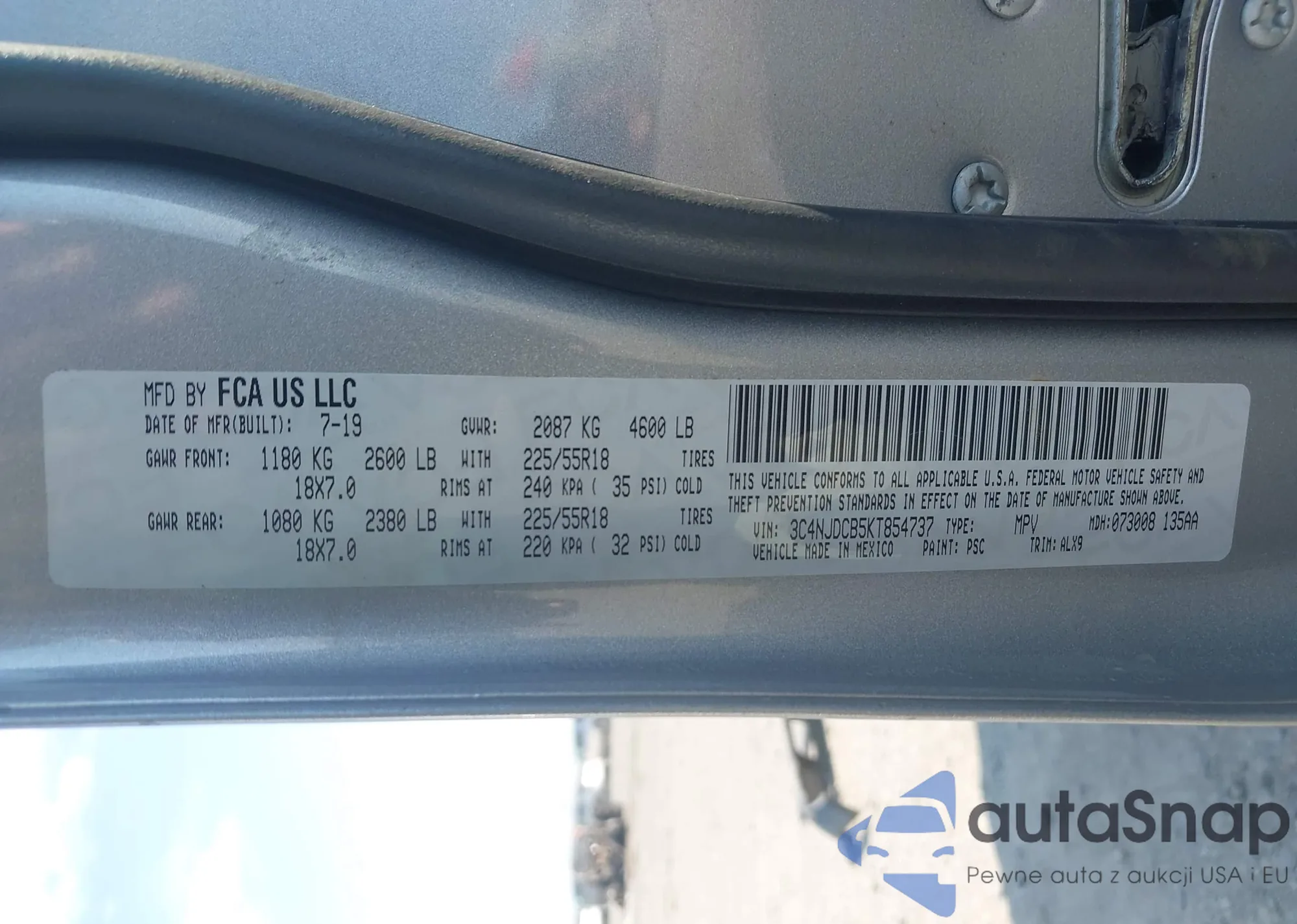 LOT: 42958692 VIN: 3C4NJDCB5KT854737