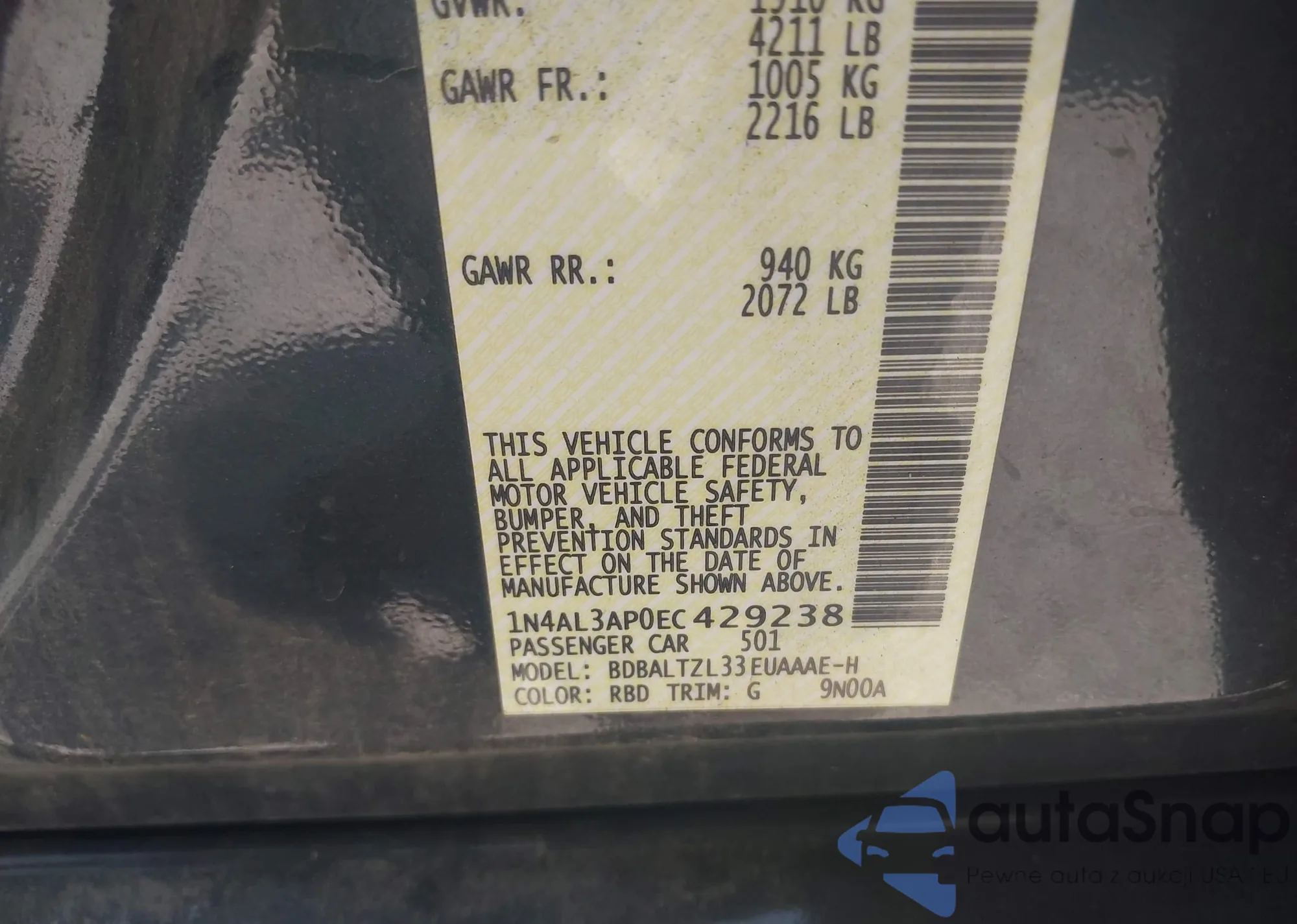 LOT: 43264449 VIN: 4T1BK1EB4EU093944