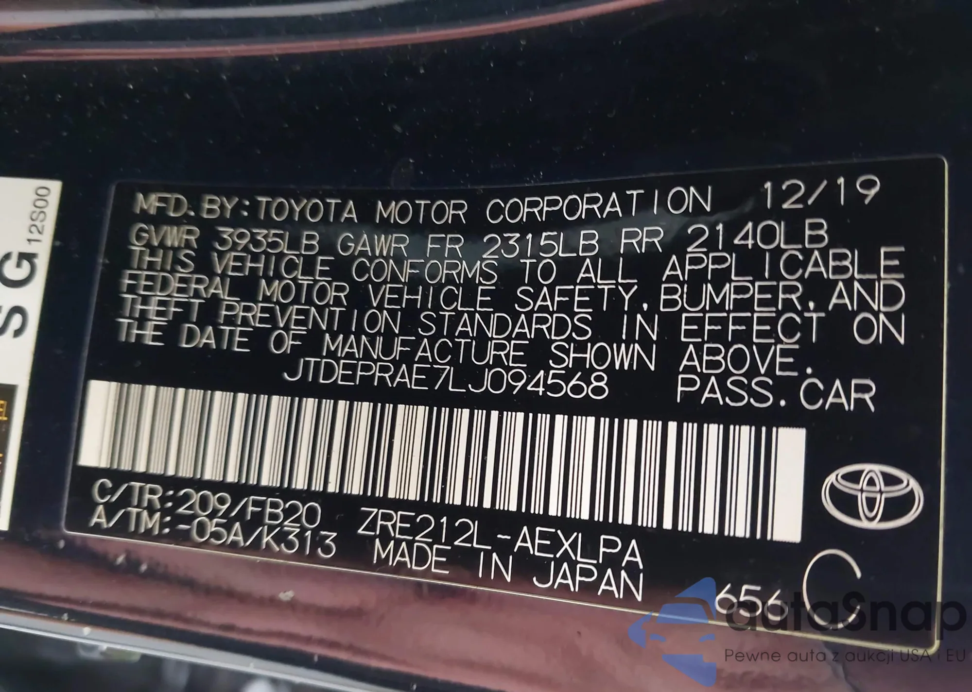 • VIN JTDEPRAE7LJ094568
