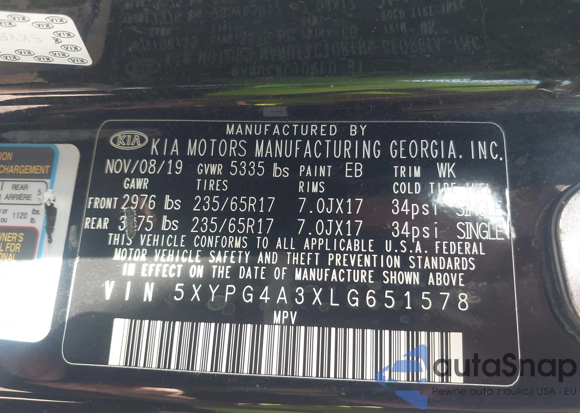 • VIN 5XYPG4A3XLG651578