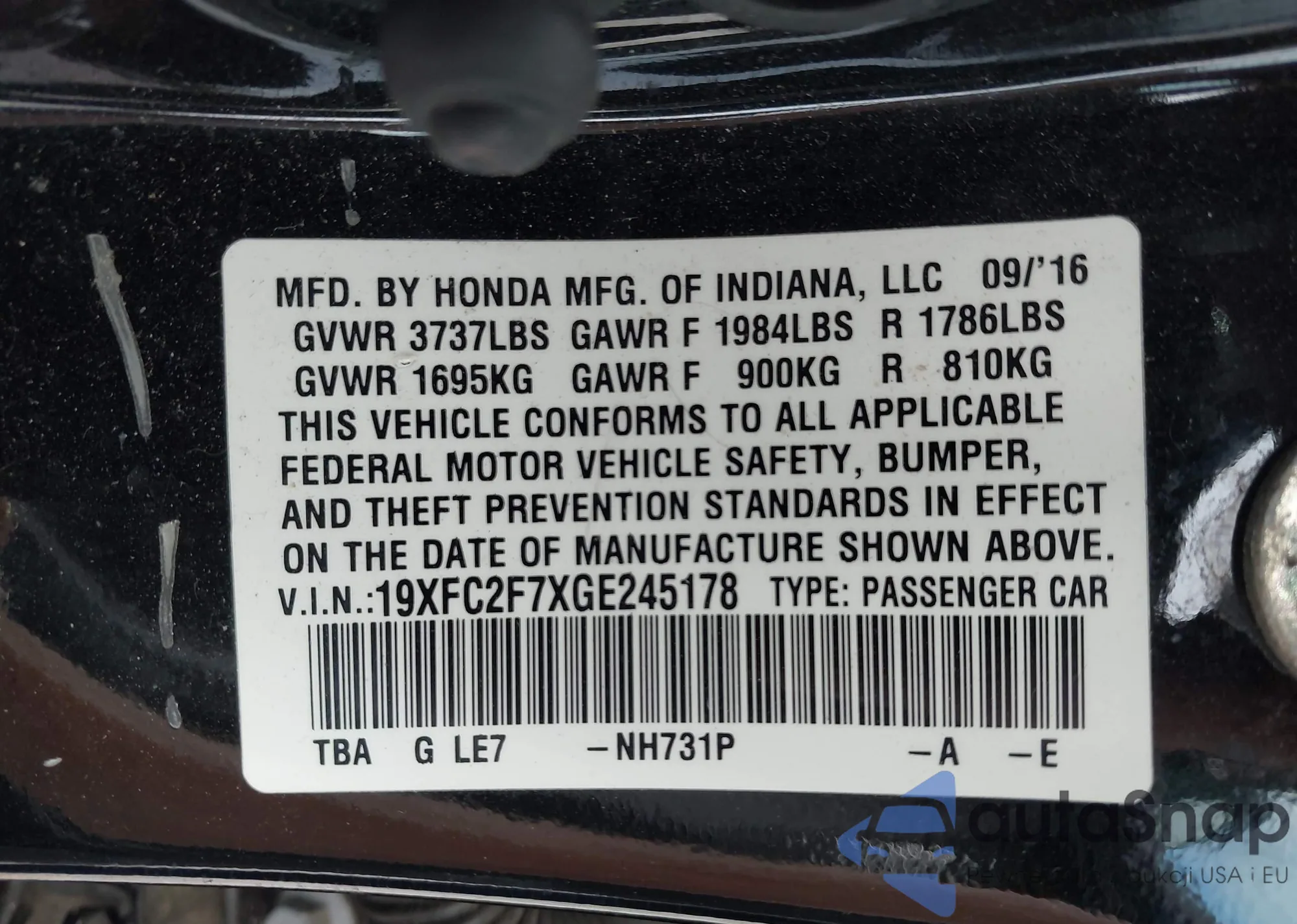 • VIN 19XFC2F7XGE245178