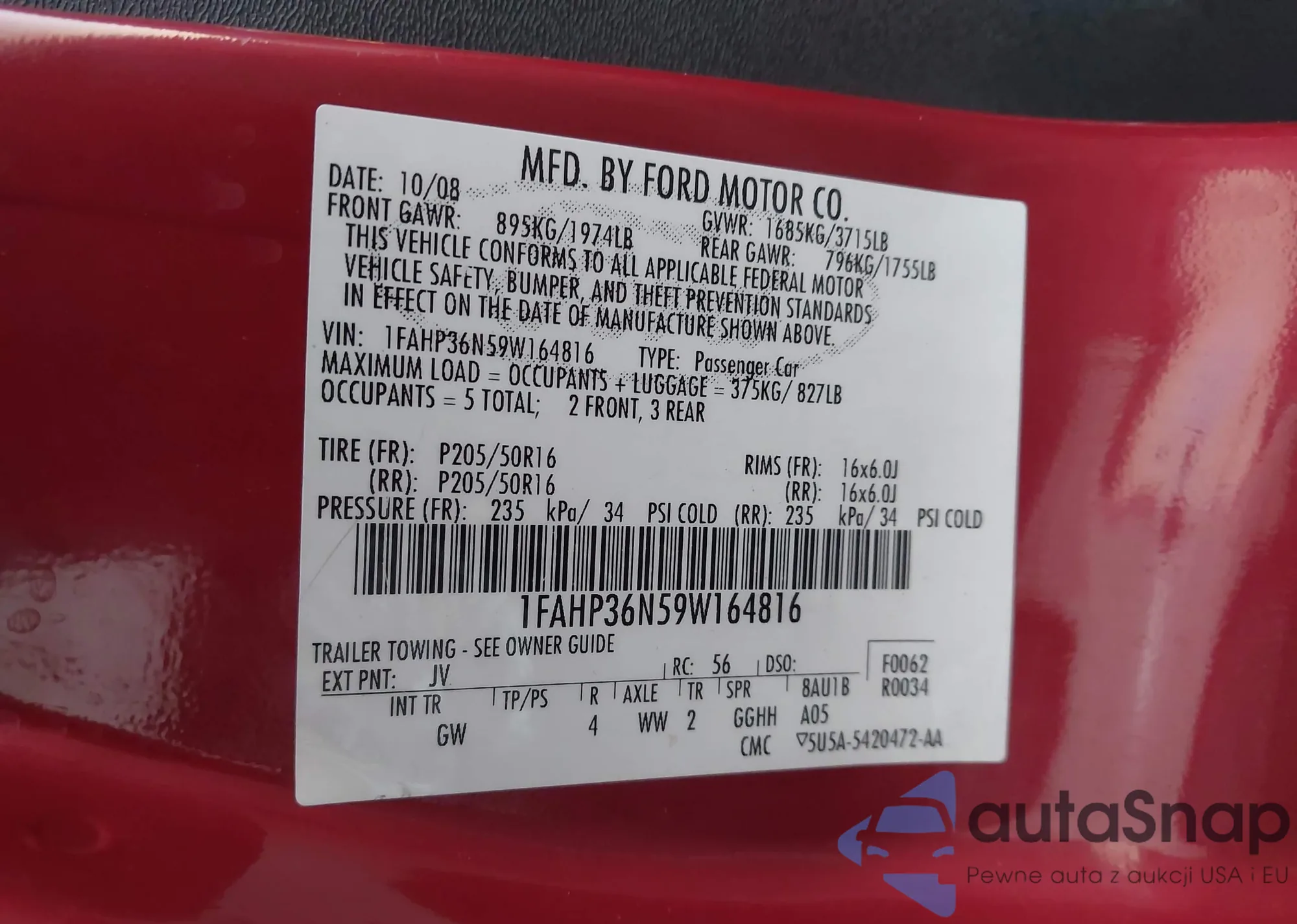 LOT: 43635695 VIN: 1FAHP36N59W164816
