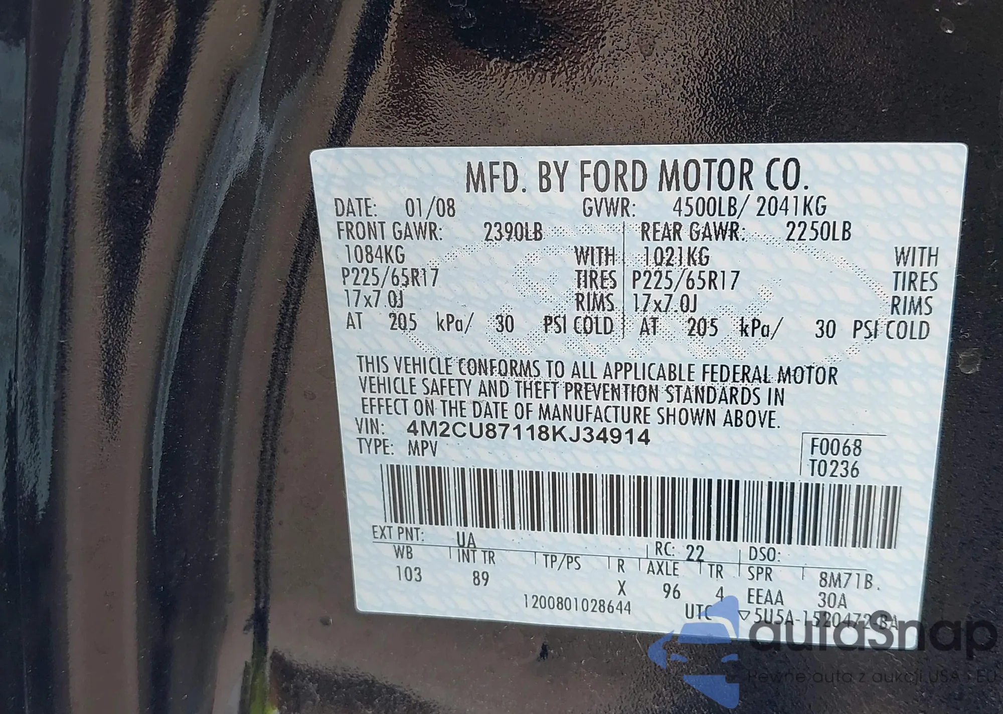 • VIN WAUKMAF47JA009817