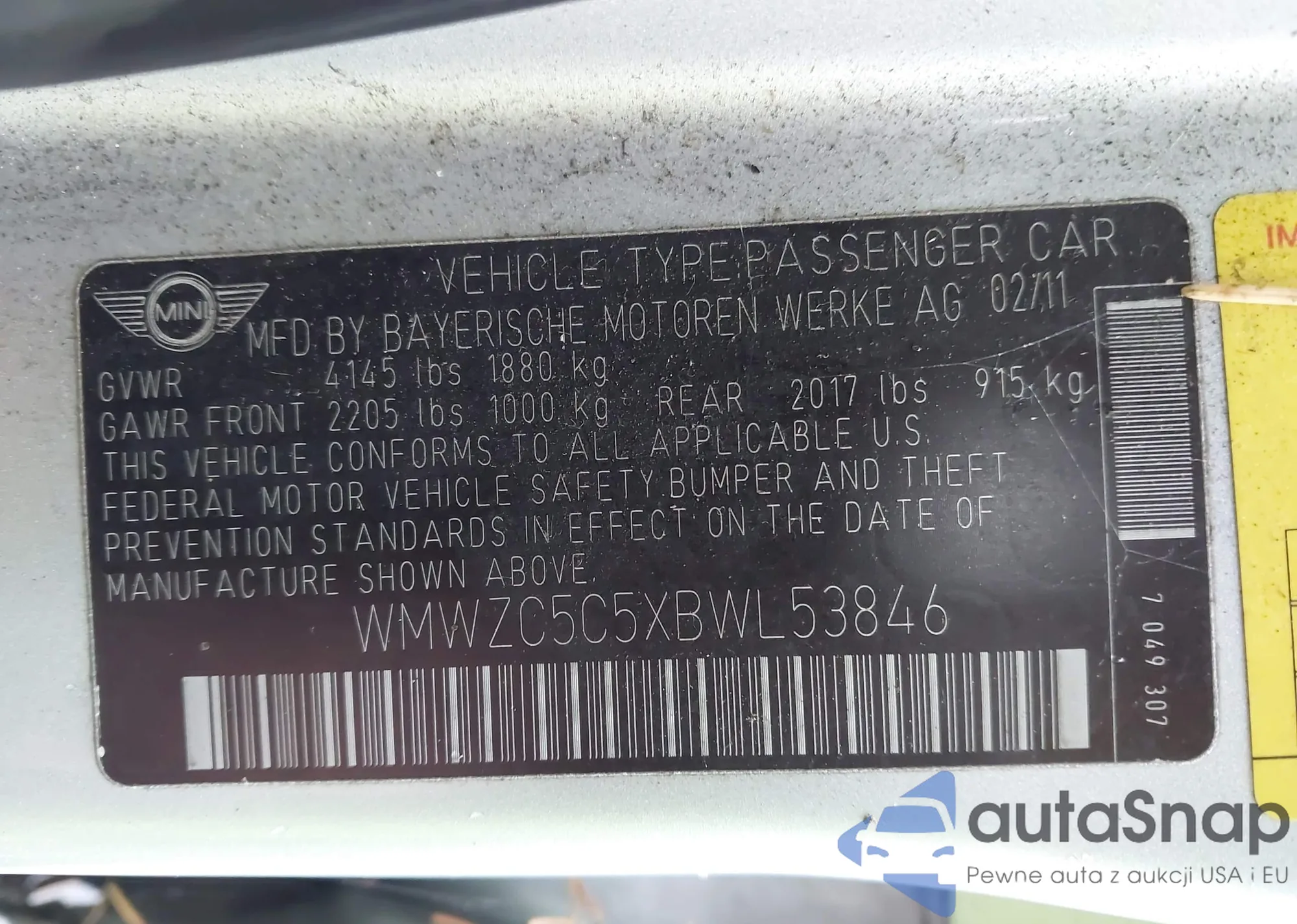 • VIN WMWZC5C5XBWL53846