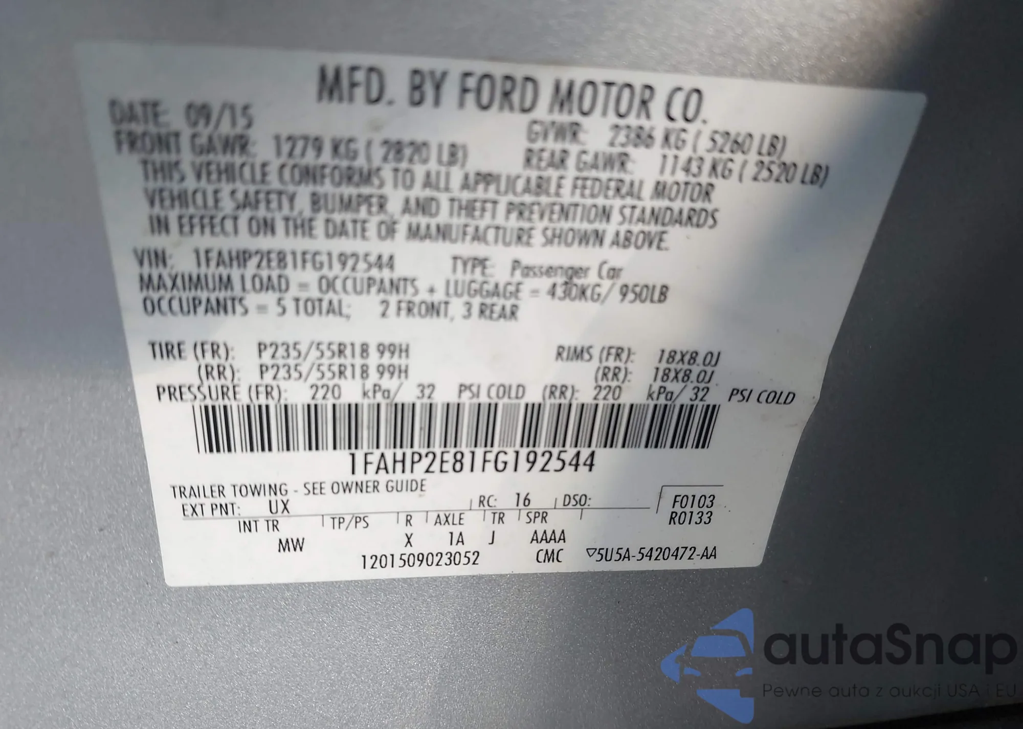 LOT: 43713829 VIN: 1FAHP2E81FG192544