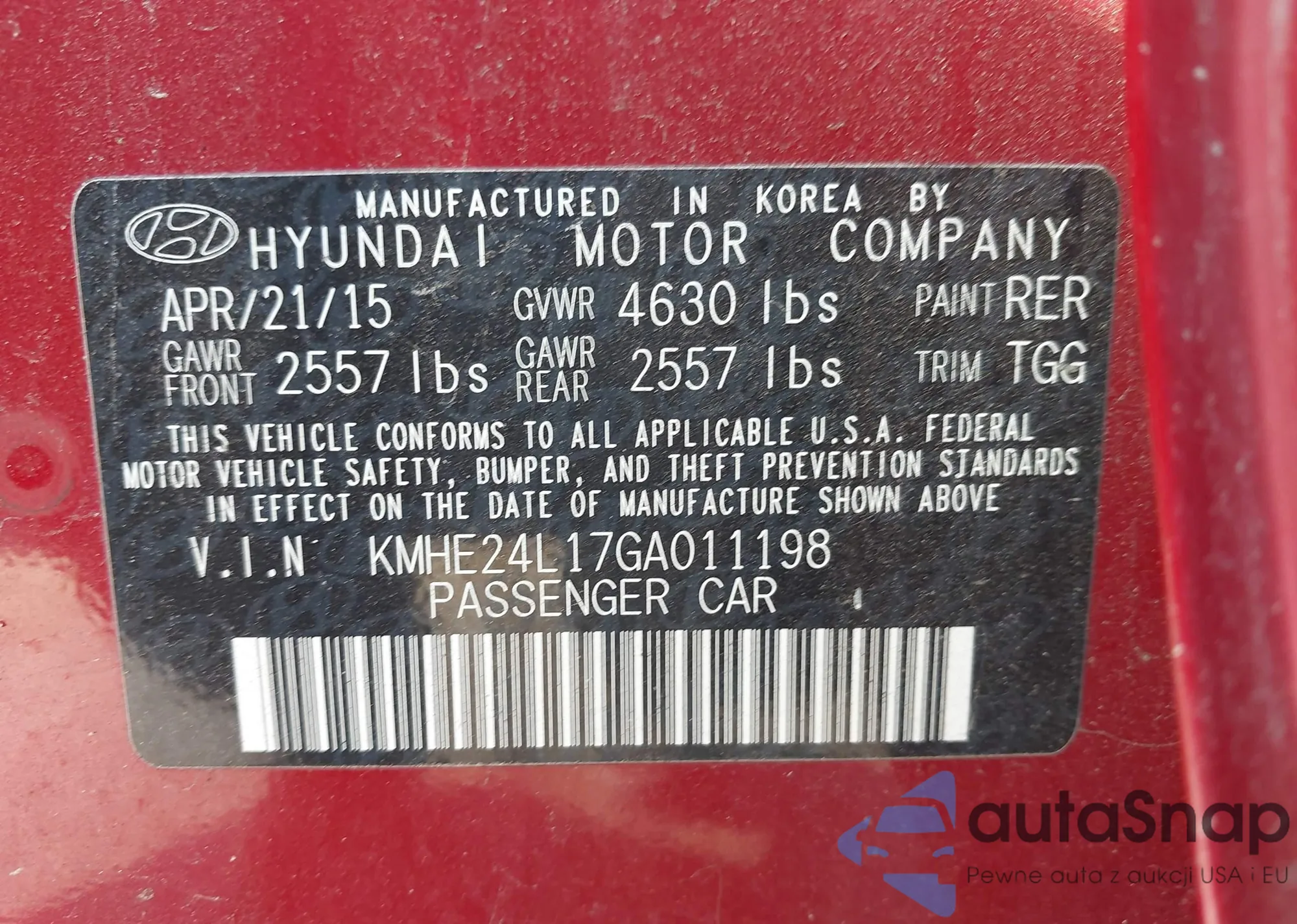 LOT: 43786712 VIN: KM8JT3AF2FU953922