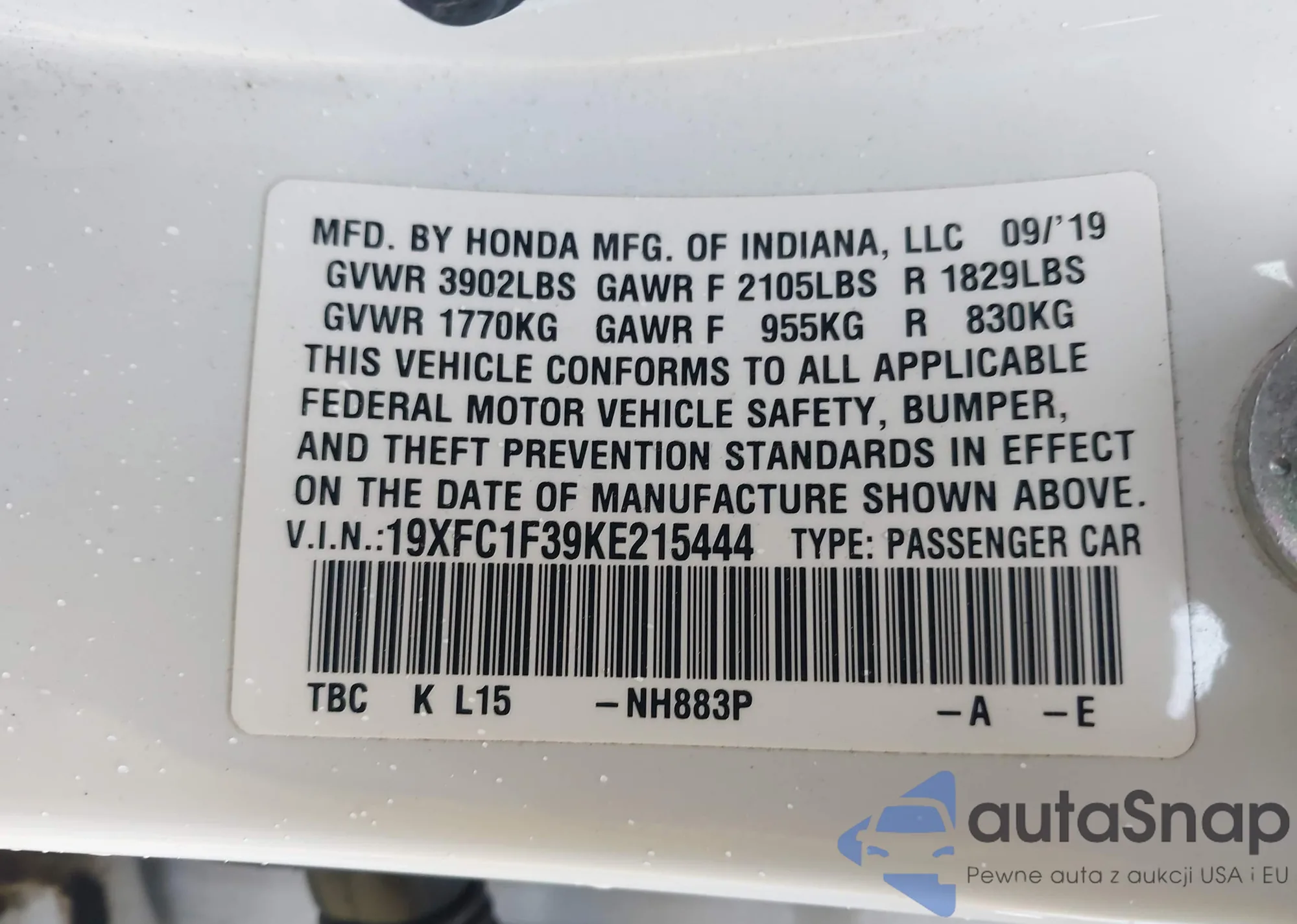 • VIN 19XFC1F39KE215444