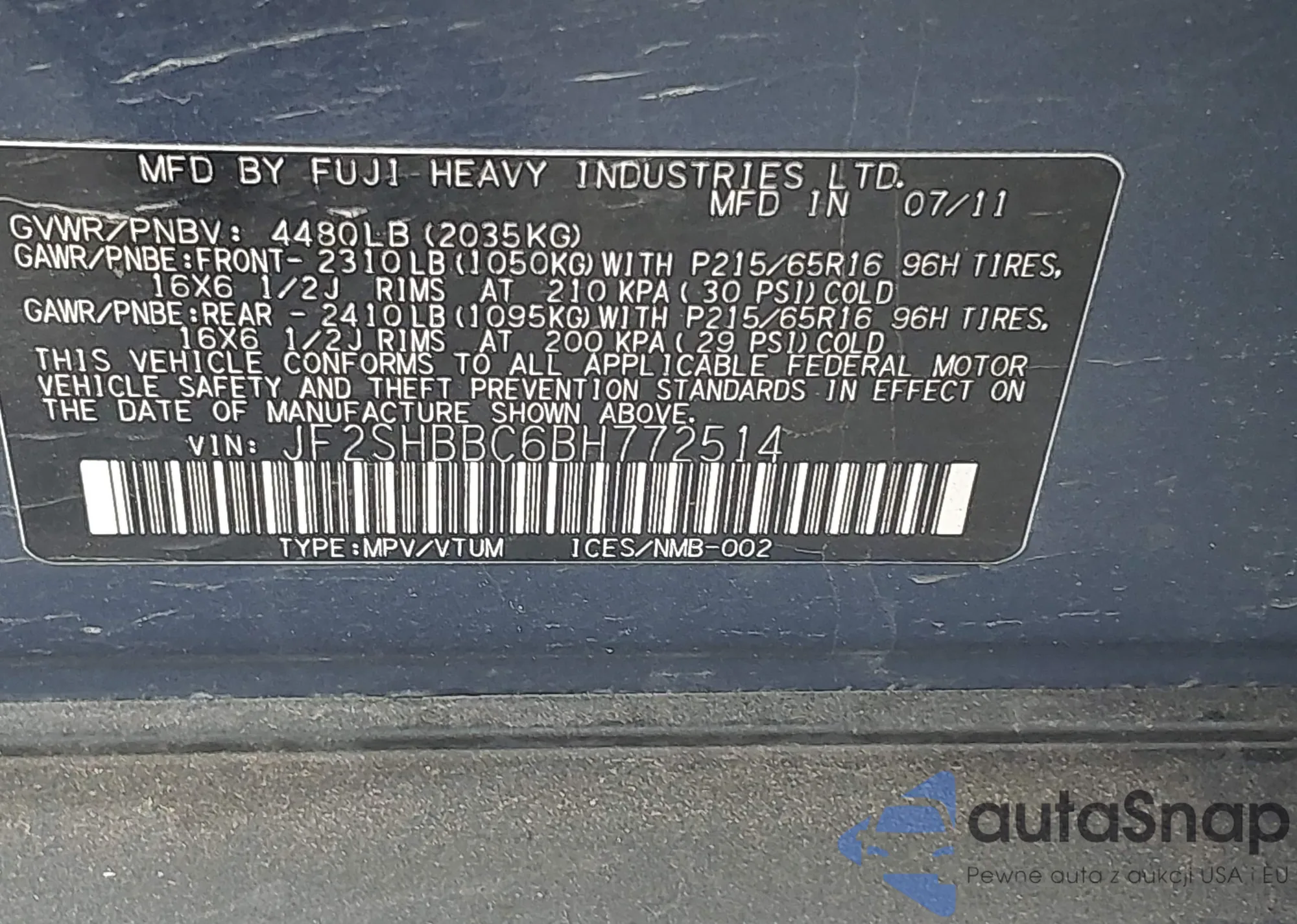 • VIN JF2SHBBC6BH772514