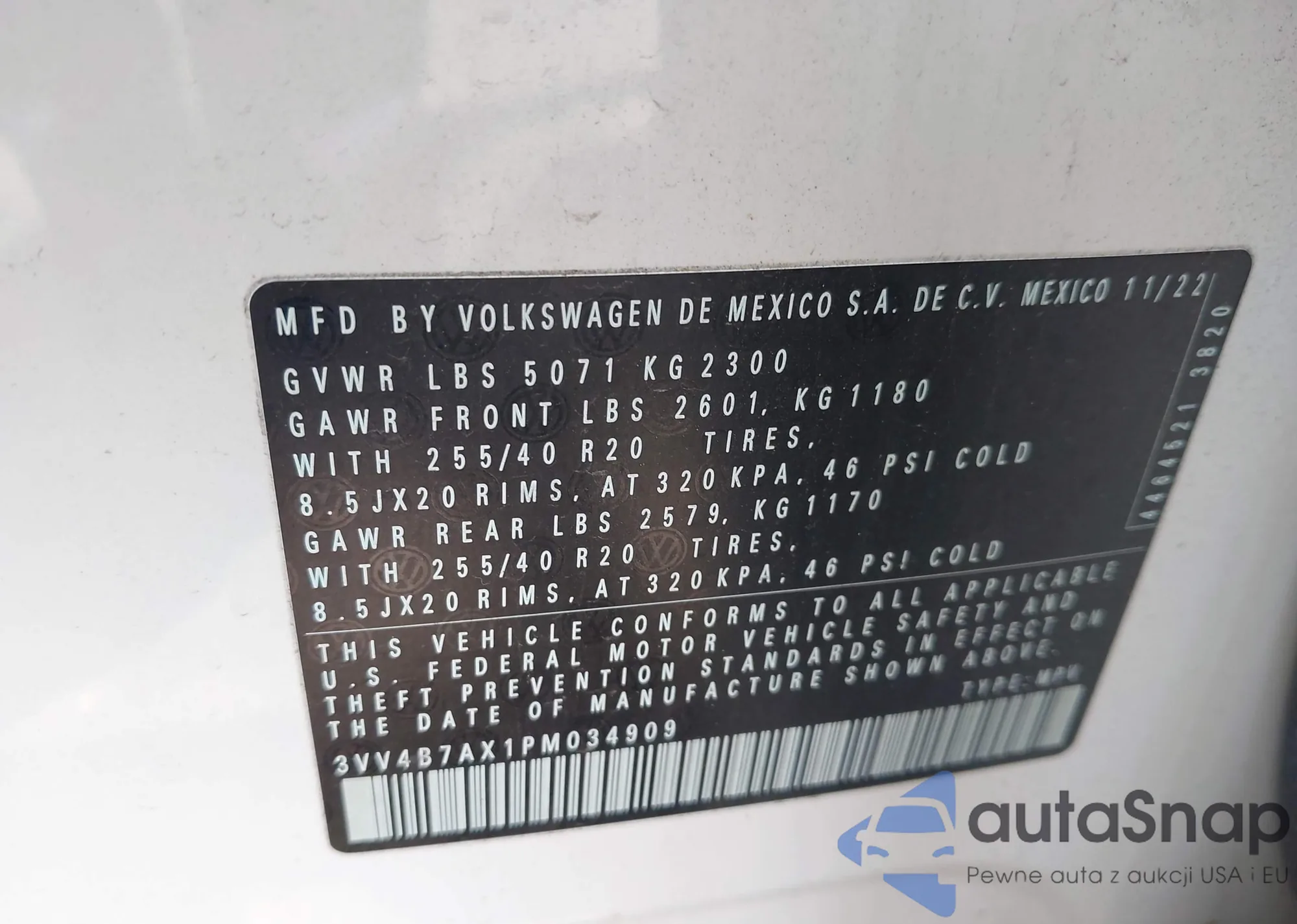 • VIN 3VV4B7AX1PM034909