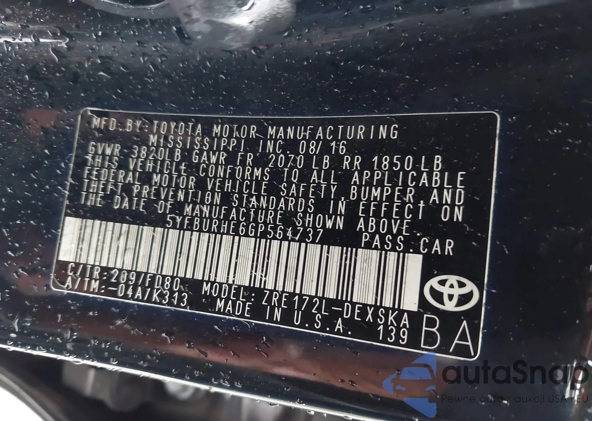 • VIN 5YFBURHE6GP564737