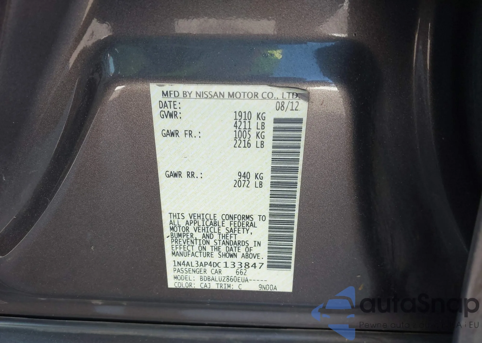 • VIN 1N4AL3AP4DC133847