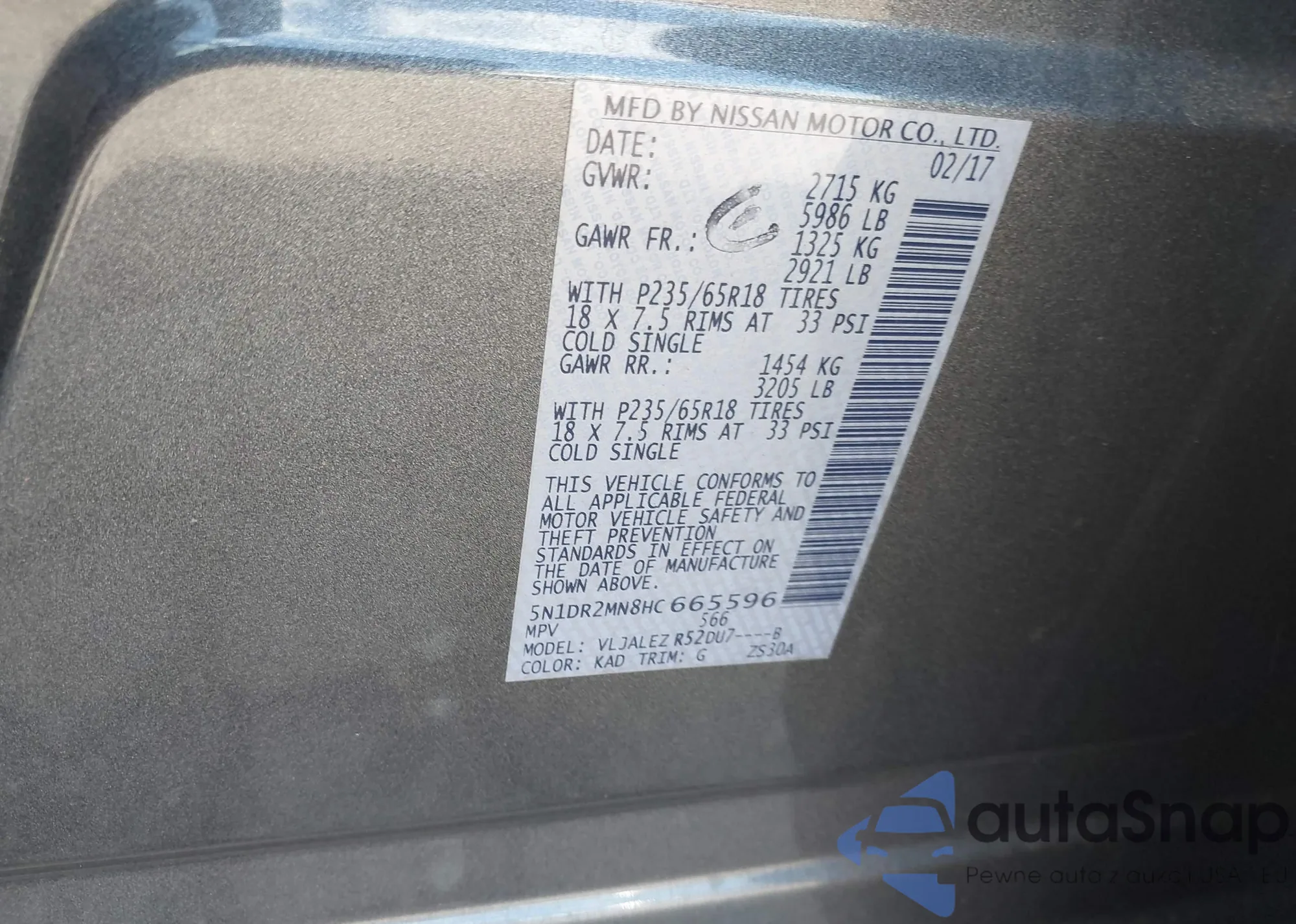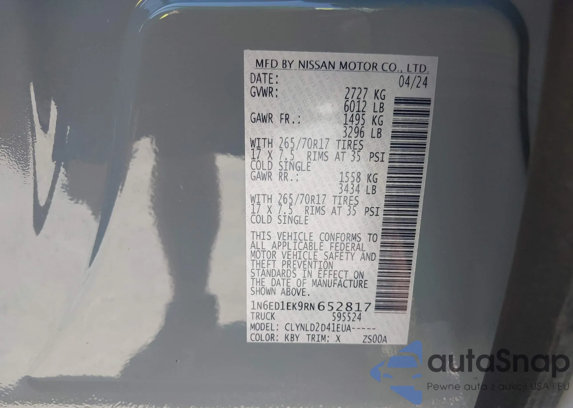 • VIN 1N6ED1EK9RN652817