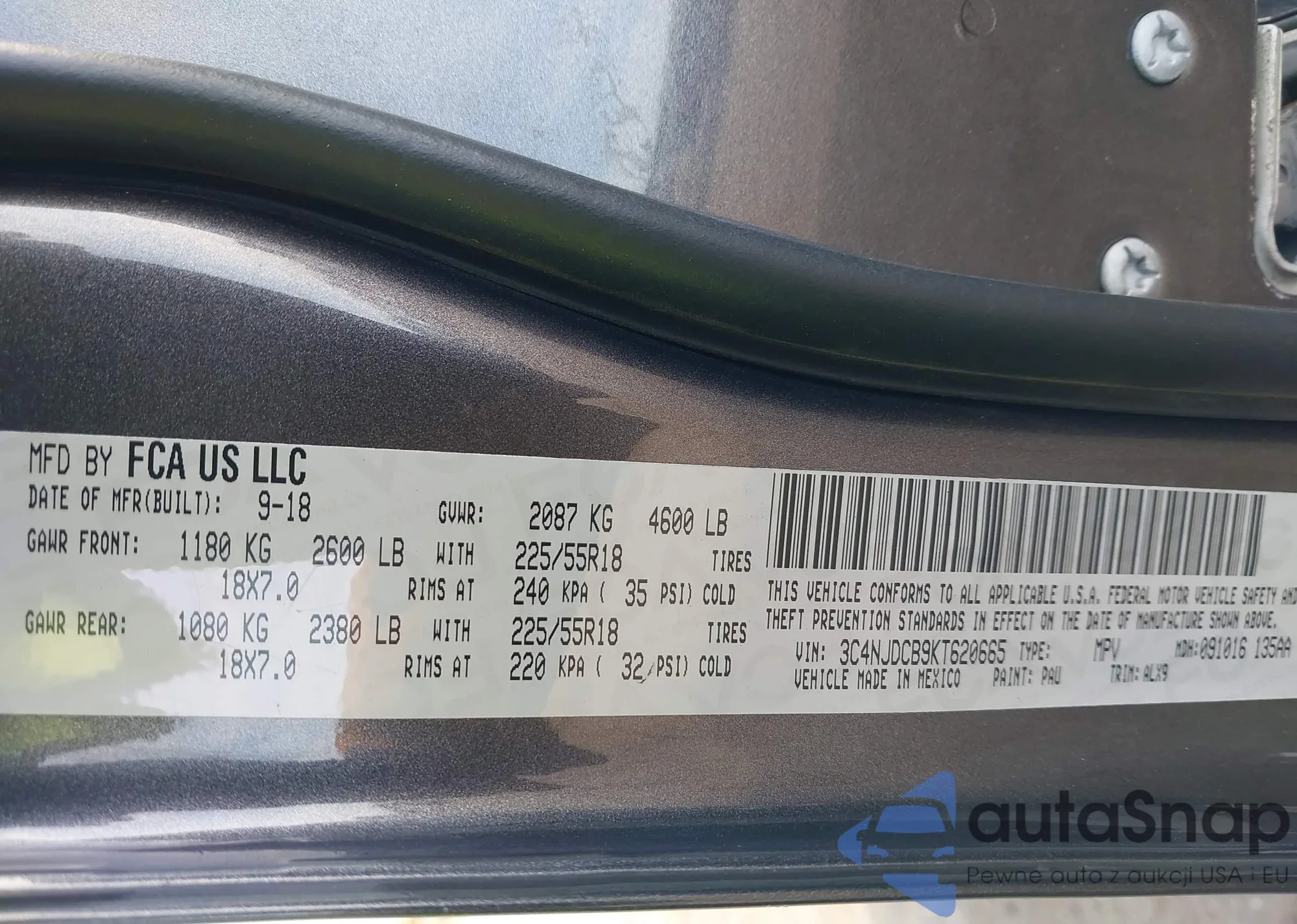 LOT: 43174366 VIN: 3C4NJDCB9KT620665