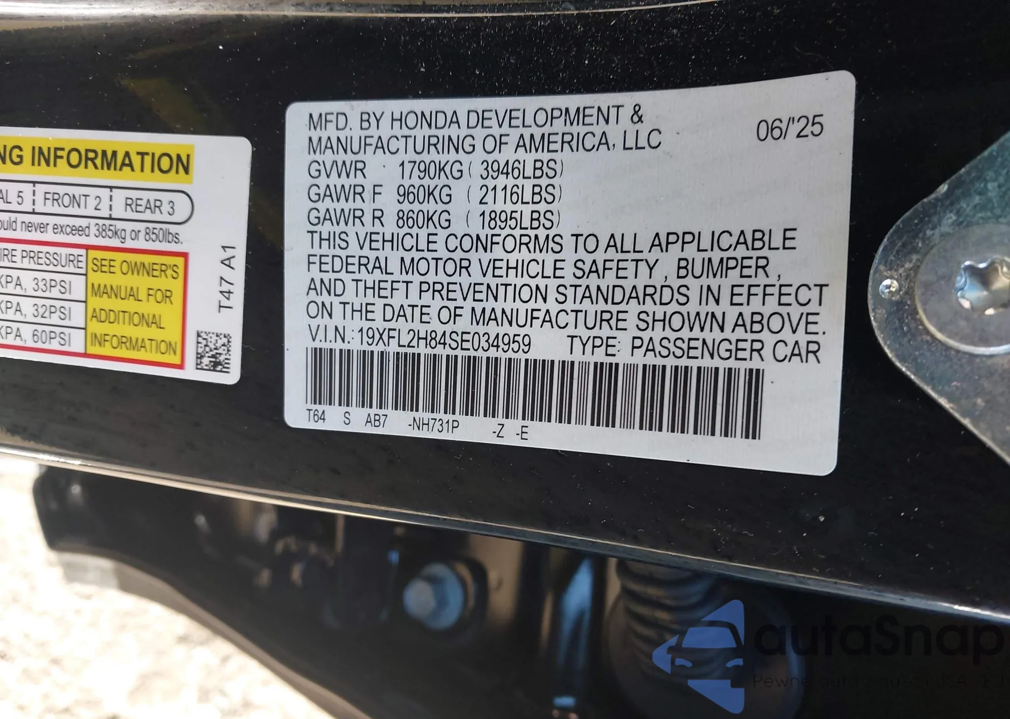 • VIN 19XFL2H84SE034959