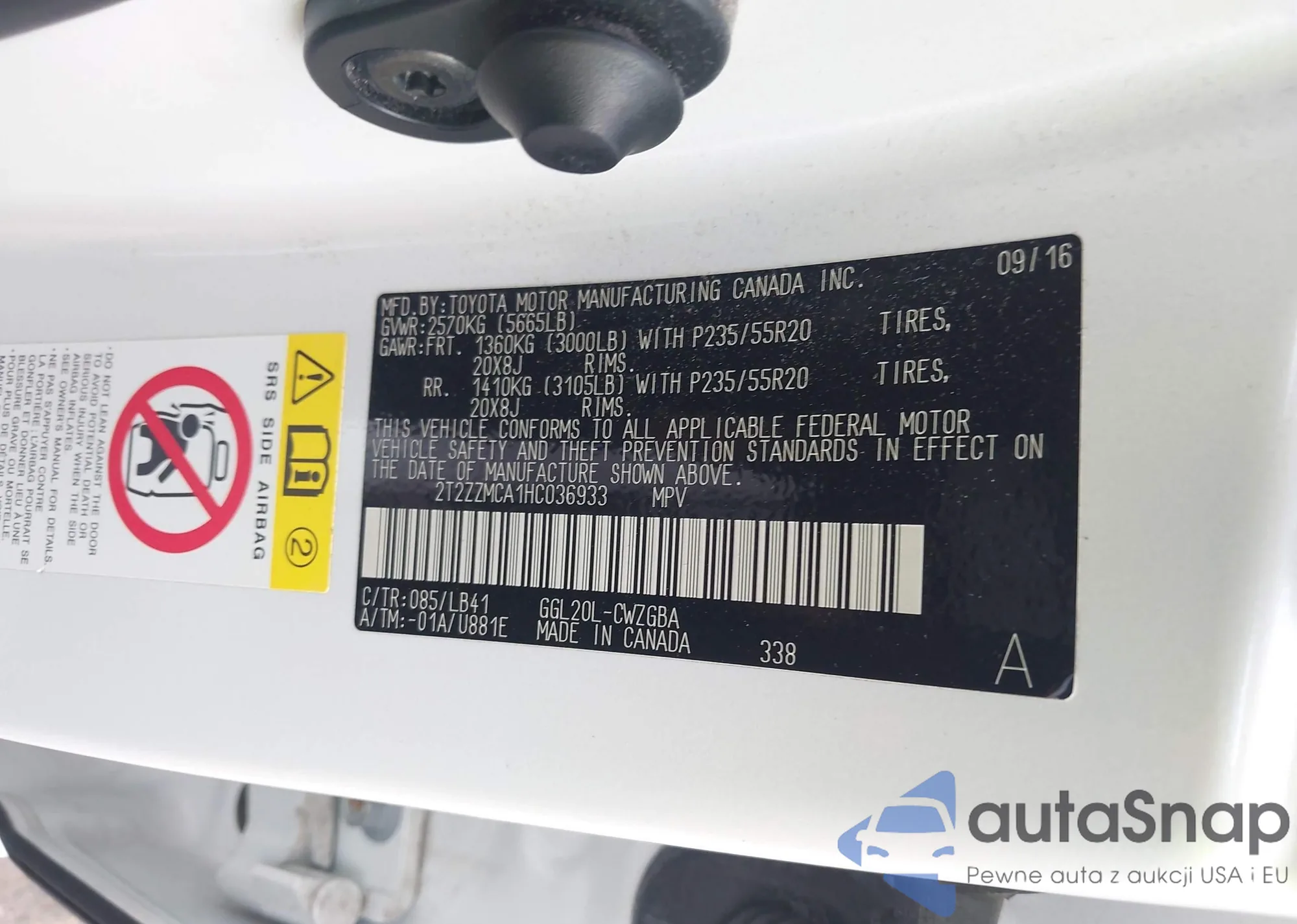 • VIN 2T2ZZMCA1HC036933