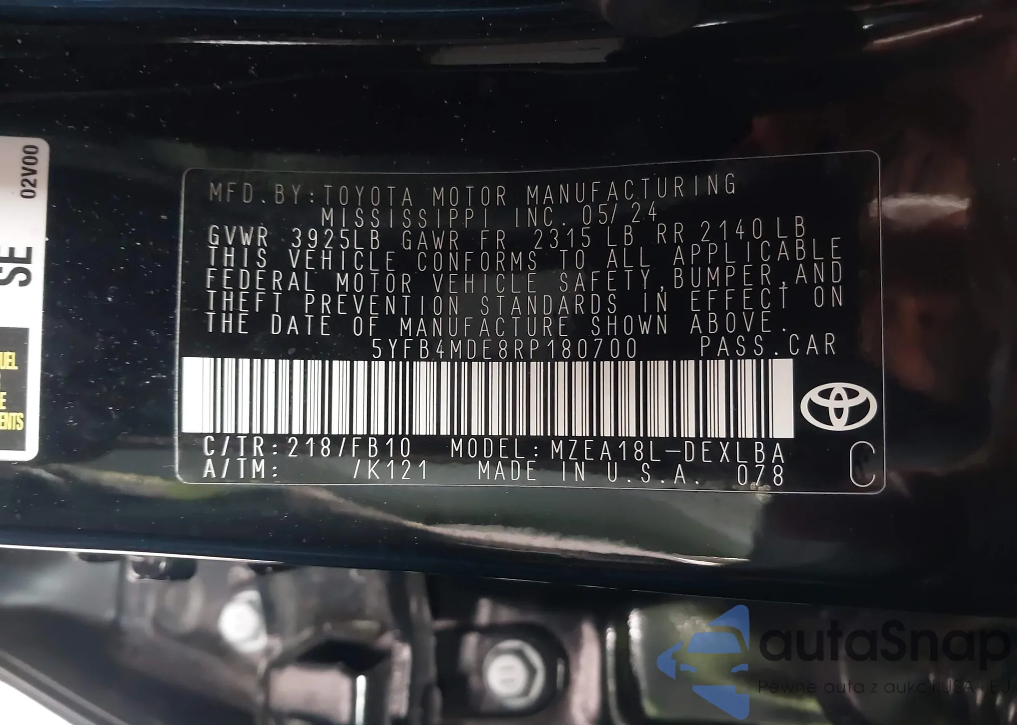 • VIN 4T1BF1FK8CU003551