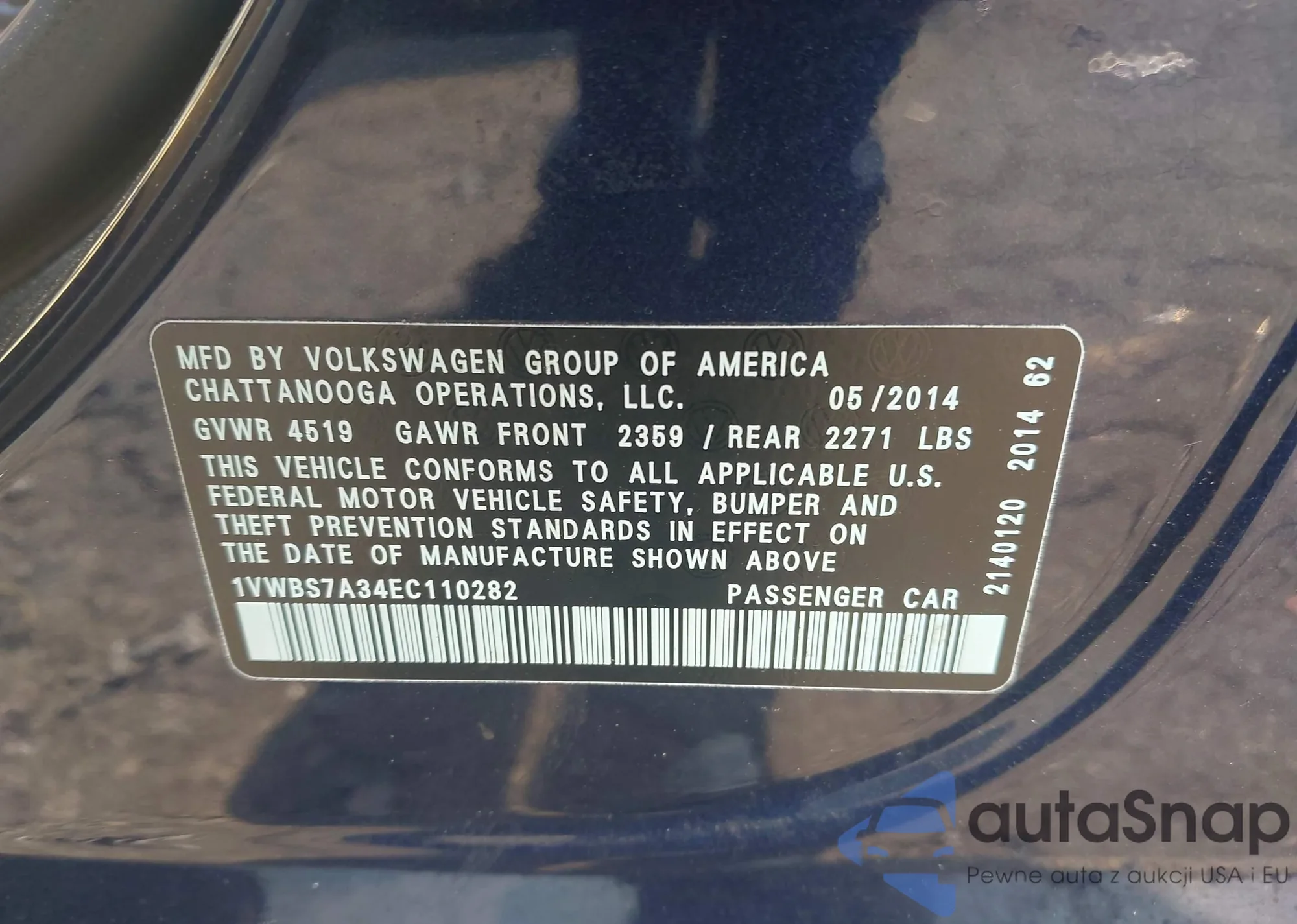 LOT: 43037754 VIN: 1VWBS7A34EC110282