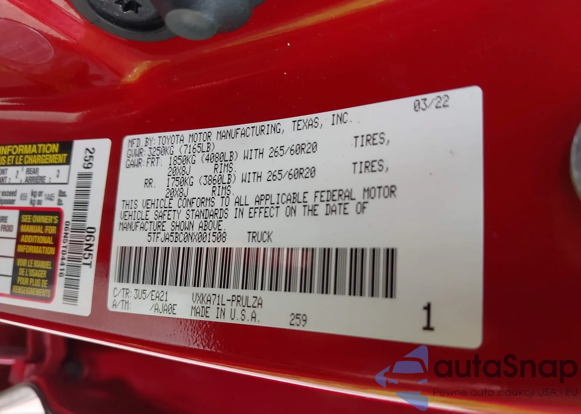 LOT: 43413067 VIN: 5TDBT48A75S251607