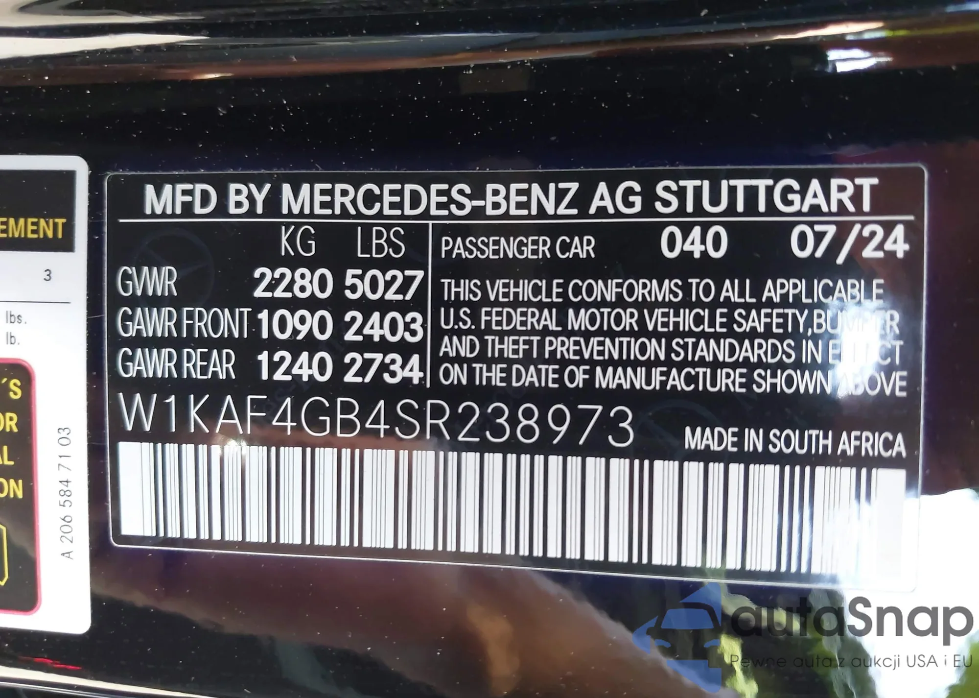 • VIN W1KAF4GB4SR238973