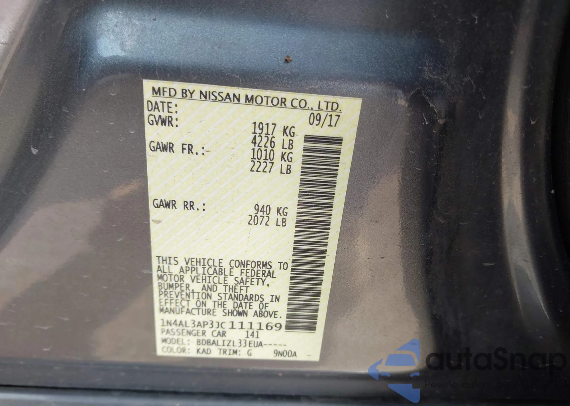 LOT: 43531530 VIN: 1N4AL3AP3JC111169