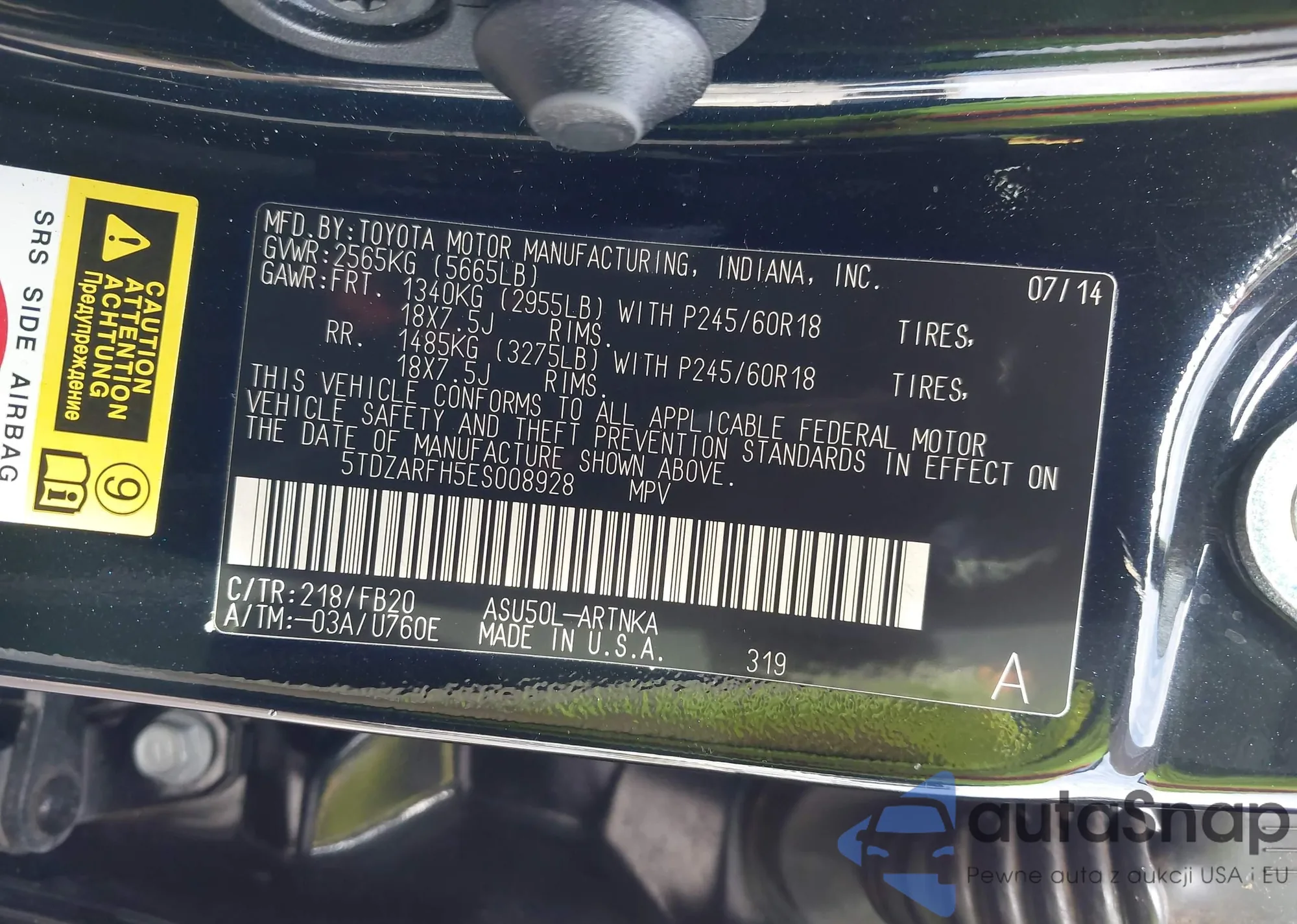 • VIN 5TDZARFH5ES008928